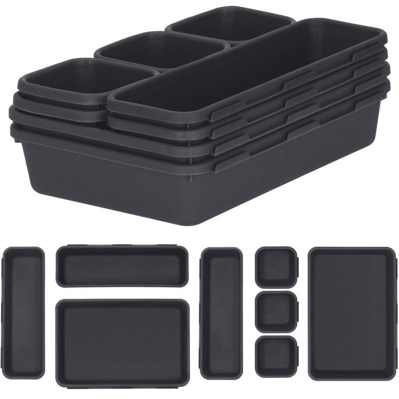 Súprava 8ks rôzne veľkých plastových organizérov s postranným zámkom. Nespočet možných zoskupení, kompaktné spojenie pomocou zámkov, pevnej steny z kvalitného plastu. Veľkosť boxov S/M/L, set v čiernej farbe.
