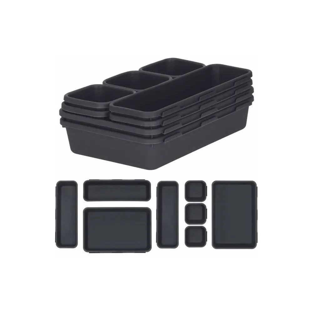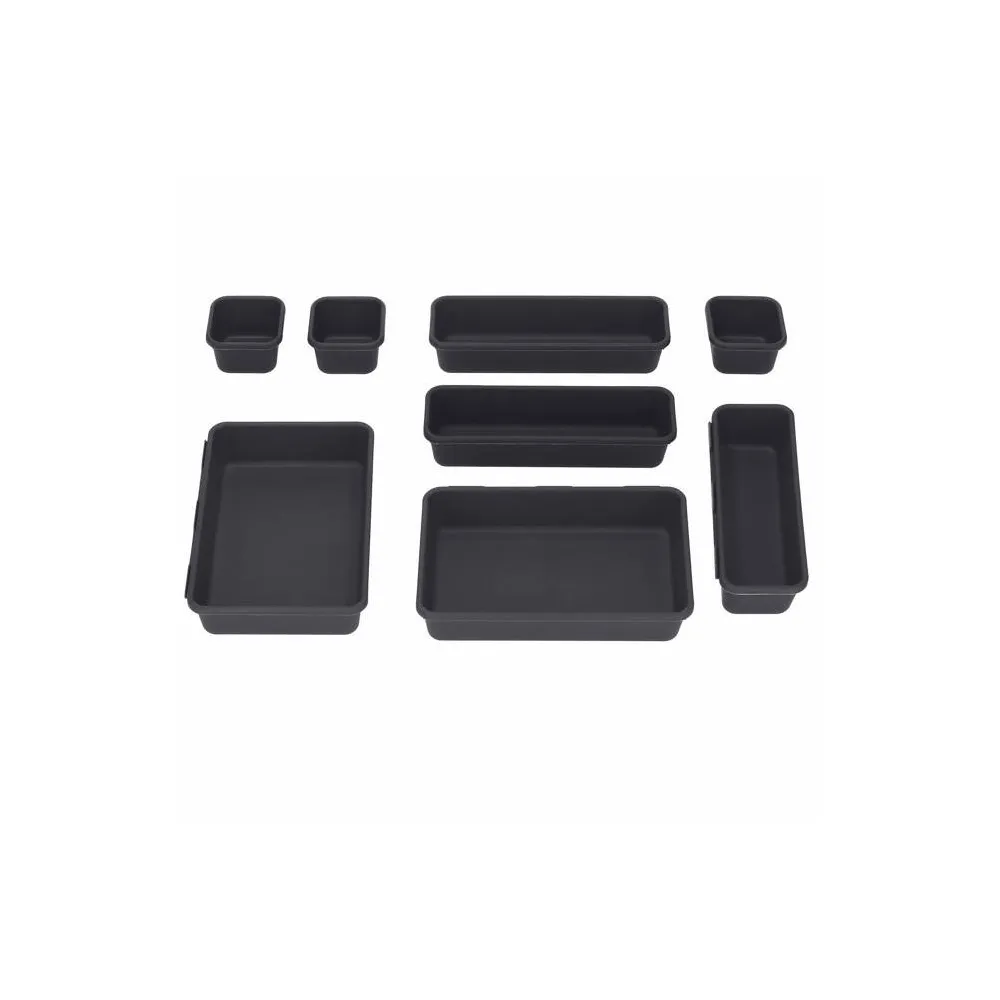 Súprava 8ks rôzne veľkých plastových organizérov s postranným zámkom. Nespočet možných zoskupení, kompaktné spojenie pomocou zámkov, pevnej steny z kvalitného plastu. Veľkosť boxov S/M/L, set v čiernej farbe.
