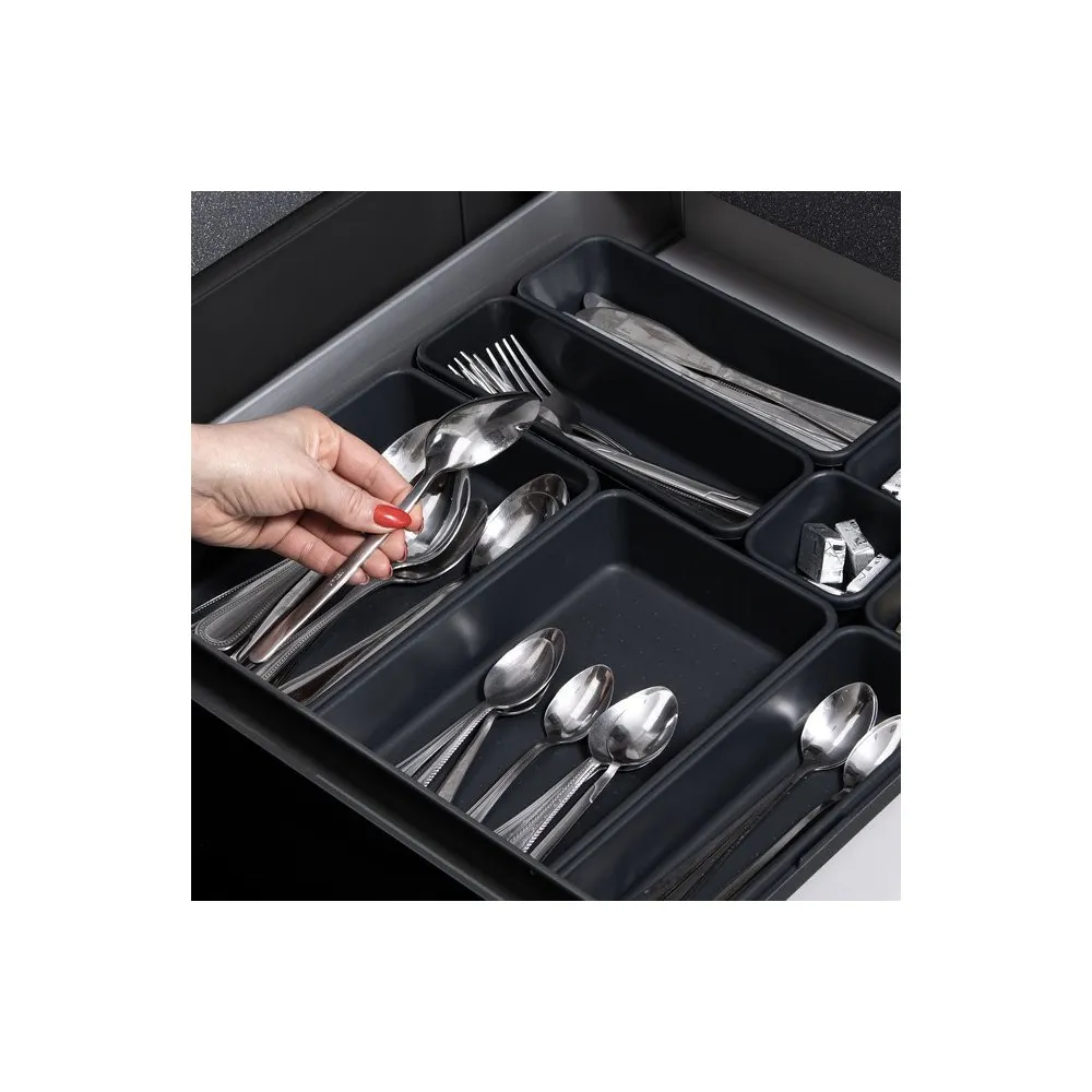 Kompaktný plastový príborník s piatimi priehradkami. Možnosť umiestnenia do zásuvky alebo na kuchynskú linku. Protišmykové nožičky. Polovičná...