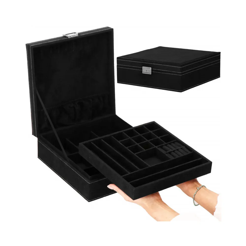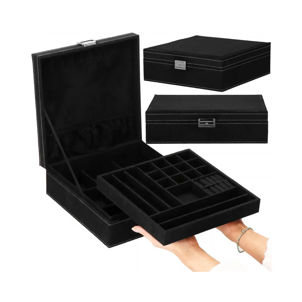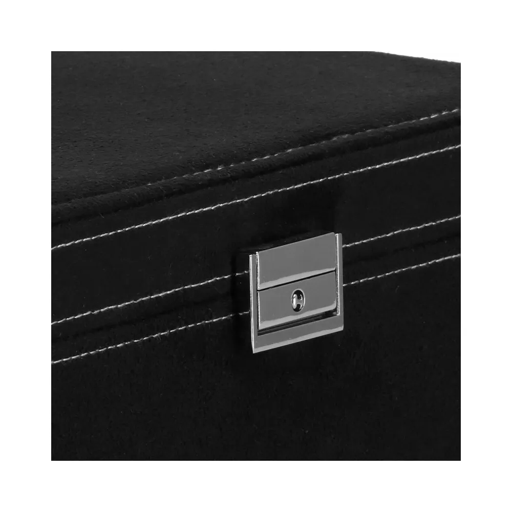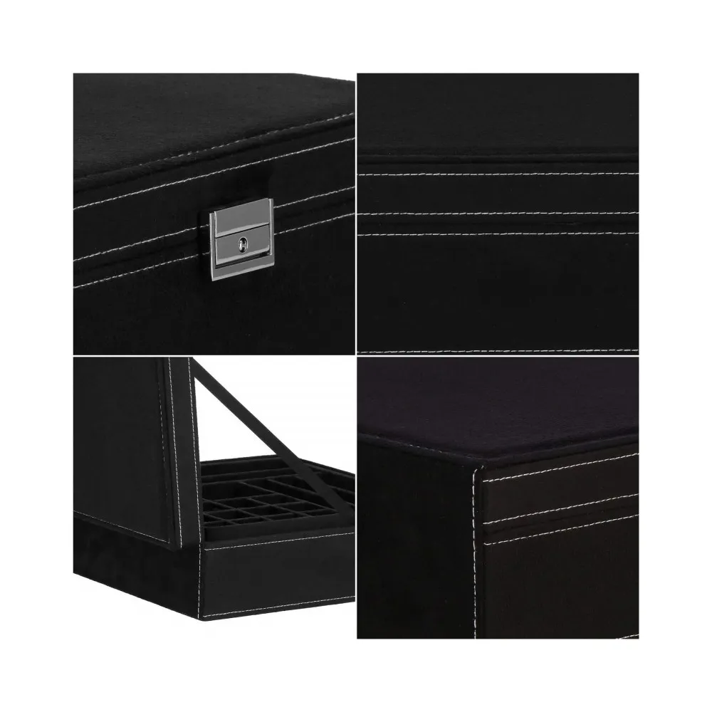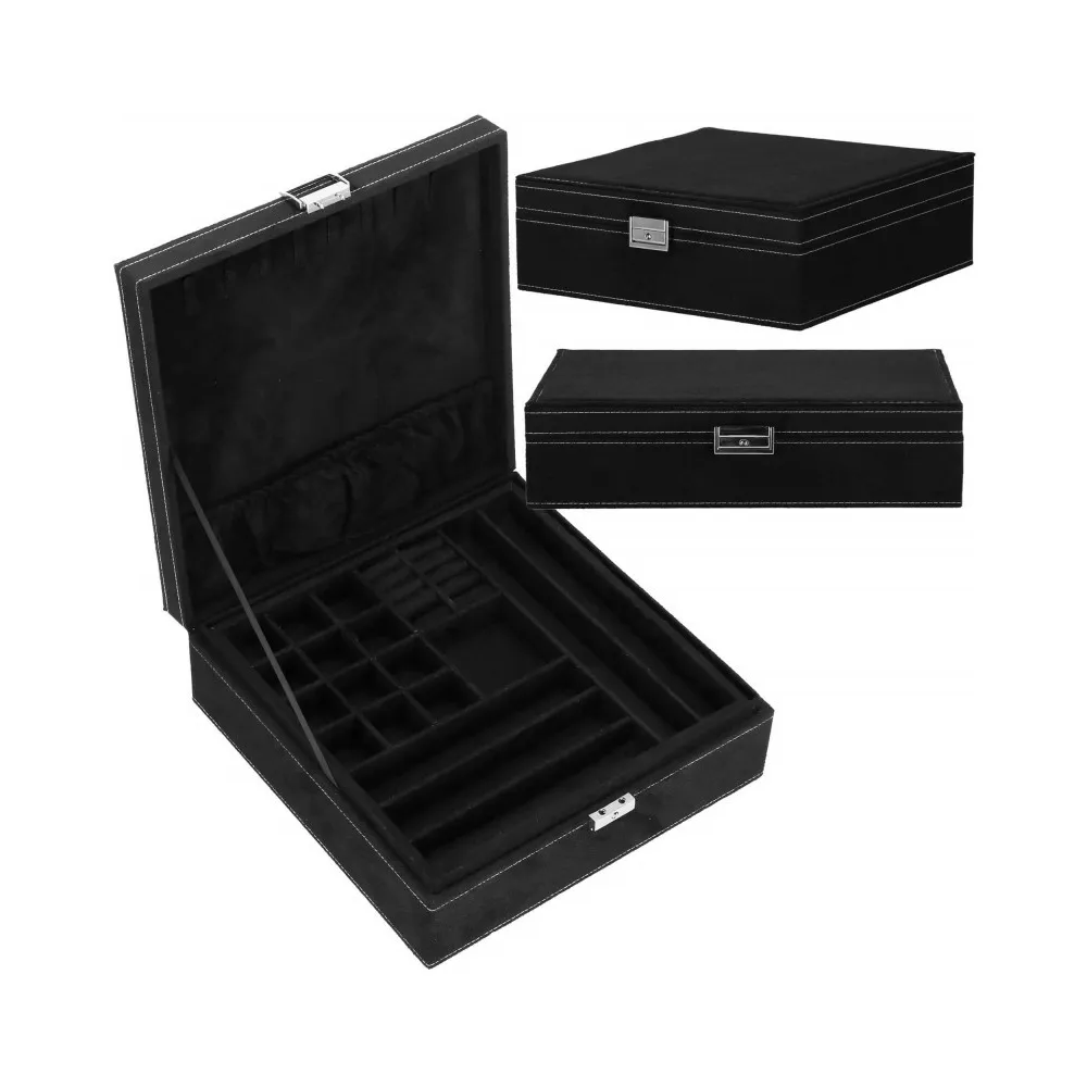 Šperkovnica Vám umožní pohodlné a bezpečné uloženie rôznych druhov prsteňov, retiazok, náramkov, brošní a ďalších doplnkov . Ponúkaný velúrový kufor značky Springos obsahuje početné priehradky, v ktorých môžete triediť cenné predmety. Biele prešívanie dokonale ladí s čiernou krabičkou. Organizér je malý, vďaka čomu je ideálny na cesty a má premyslený dizajn, vďaka ktorému nájde každá cennosť svoje miesto. Rozmer je 26x26x9 cm.