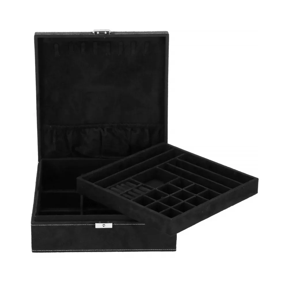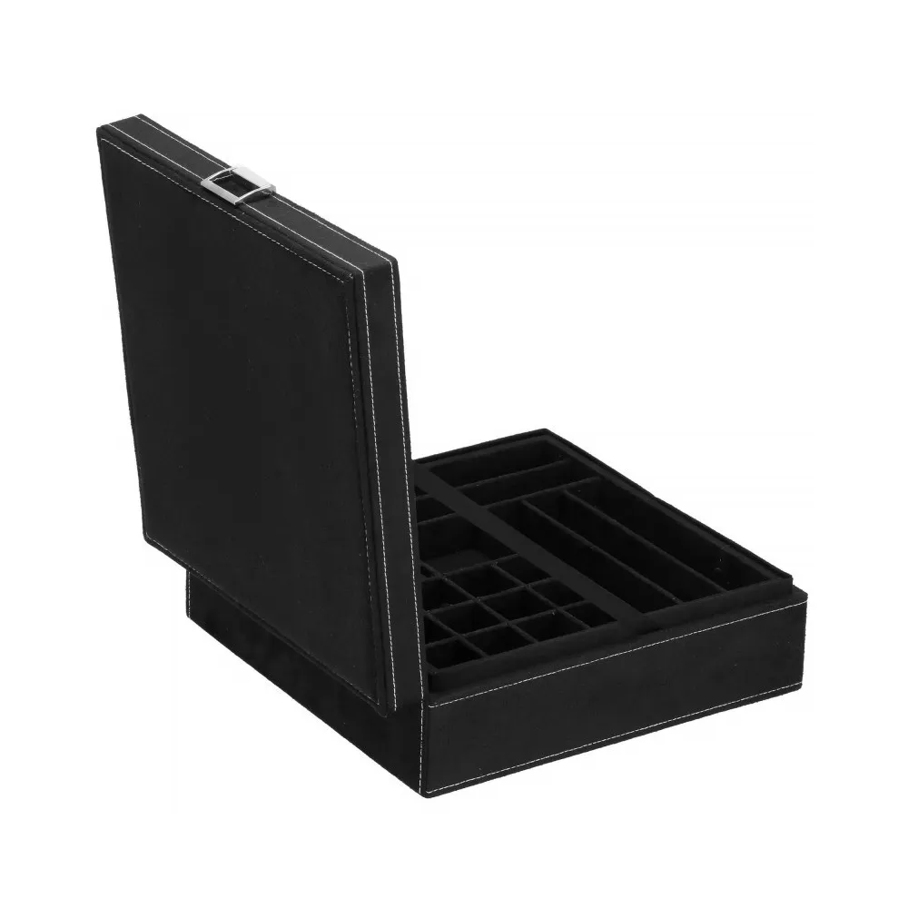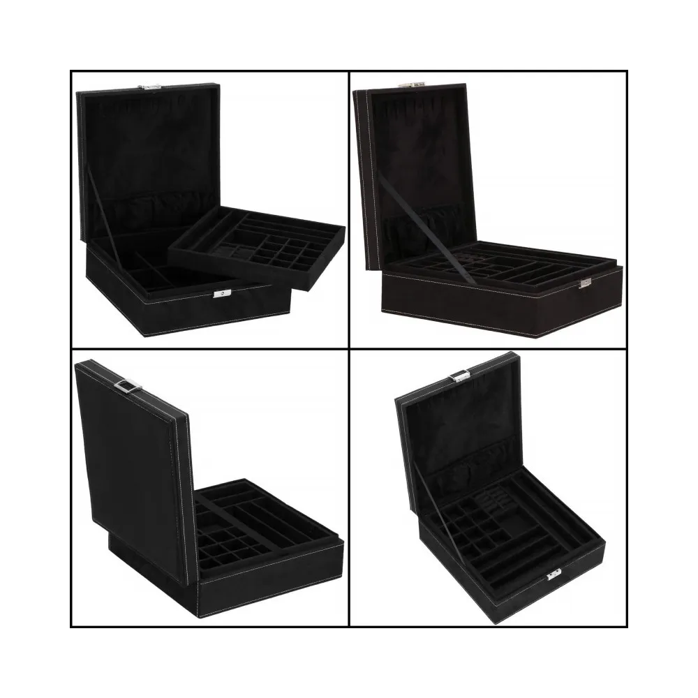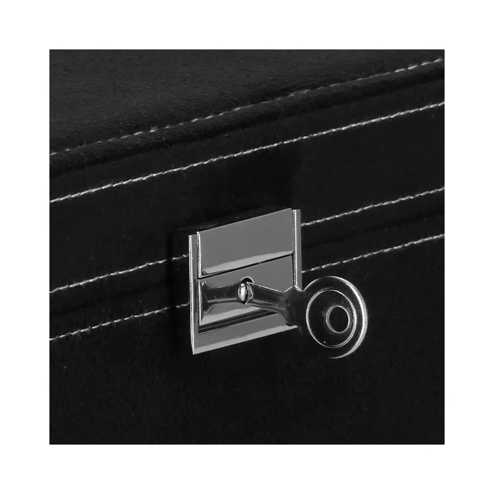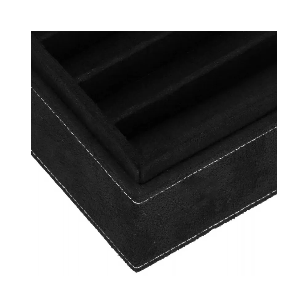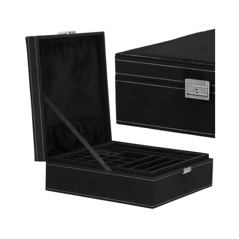 Šperkovnica Vám umožní pohodlné a bezpečné uloženie rôznych druhov prsteňov, retiazok, náramkov, brošní a ďalších doplnkov . Ponúkaný velúrový kufor značky Springos obsahuje početné priehradky, v ktorých môžete triediť cenné predmety. Biele prešívanie dokonale ladí s čiernou krabičkou. Organizér je malý, vďaka čomu je ideálny na cesty a má premyslený dizajn, vďaka ktorému nájde každá cennosť svoje miesto. Rozmer je 26x26x9 cm.