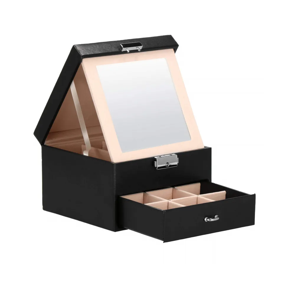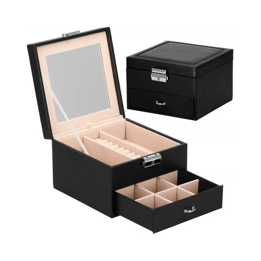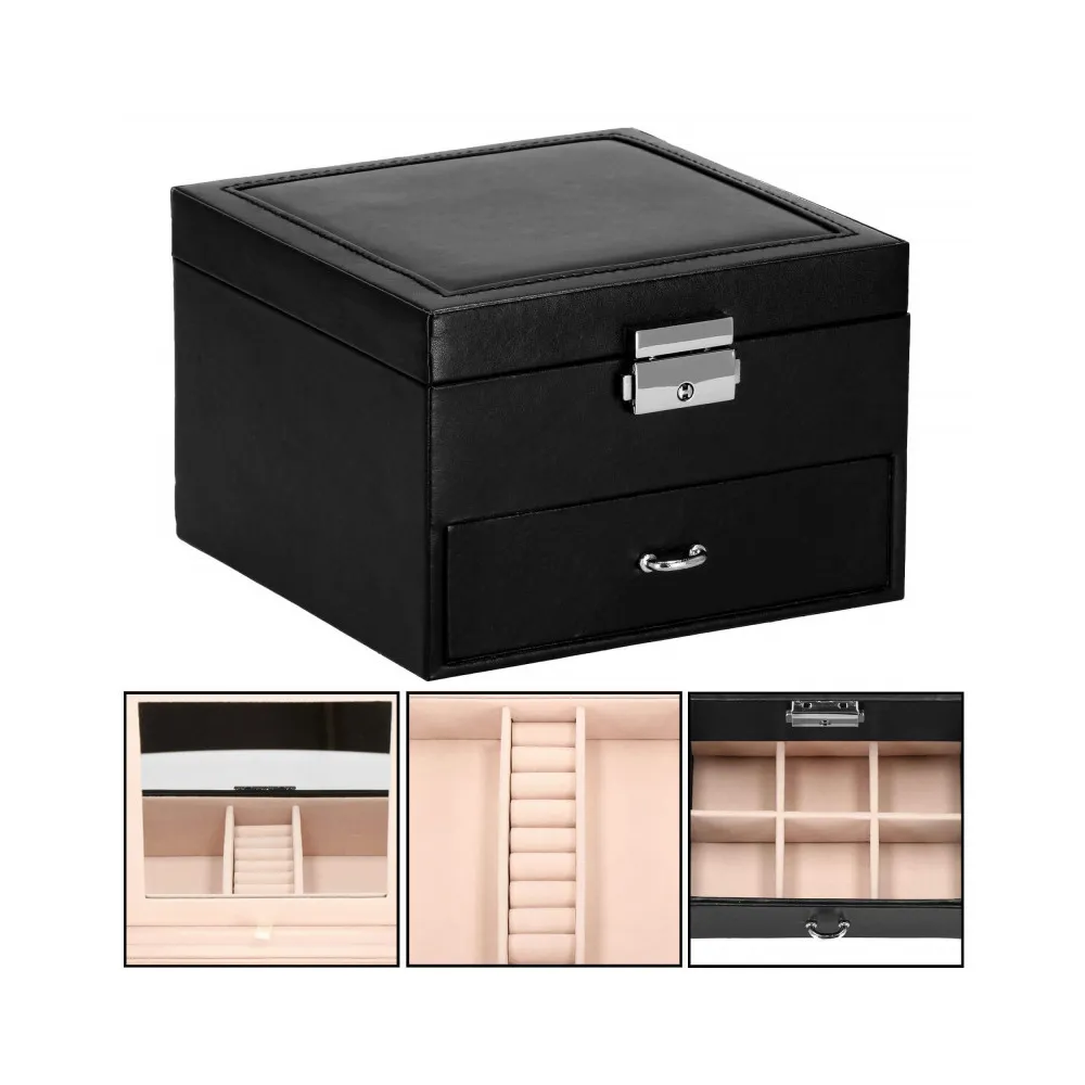 Ak zbierate retiazky, náramky a ďalšie vzácne drobnosti, uchovávajte ich vo svojej šperkovnici . Ponúkaný organizér bude v tejto úlohe perfektný. Má rozmery 16x16x11 cm, takže nezaberie veľa miesta. Premyslený dizajn, podšité vložky. Do zásuviek je možné uložiť retiazky, hodinky, náramky, brošne, korálky, bižutériu alebo gombíky.