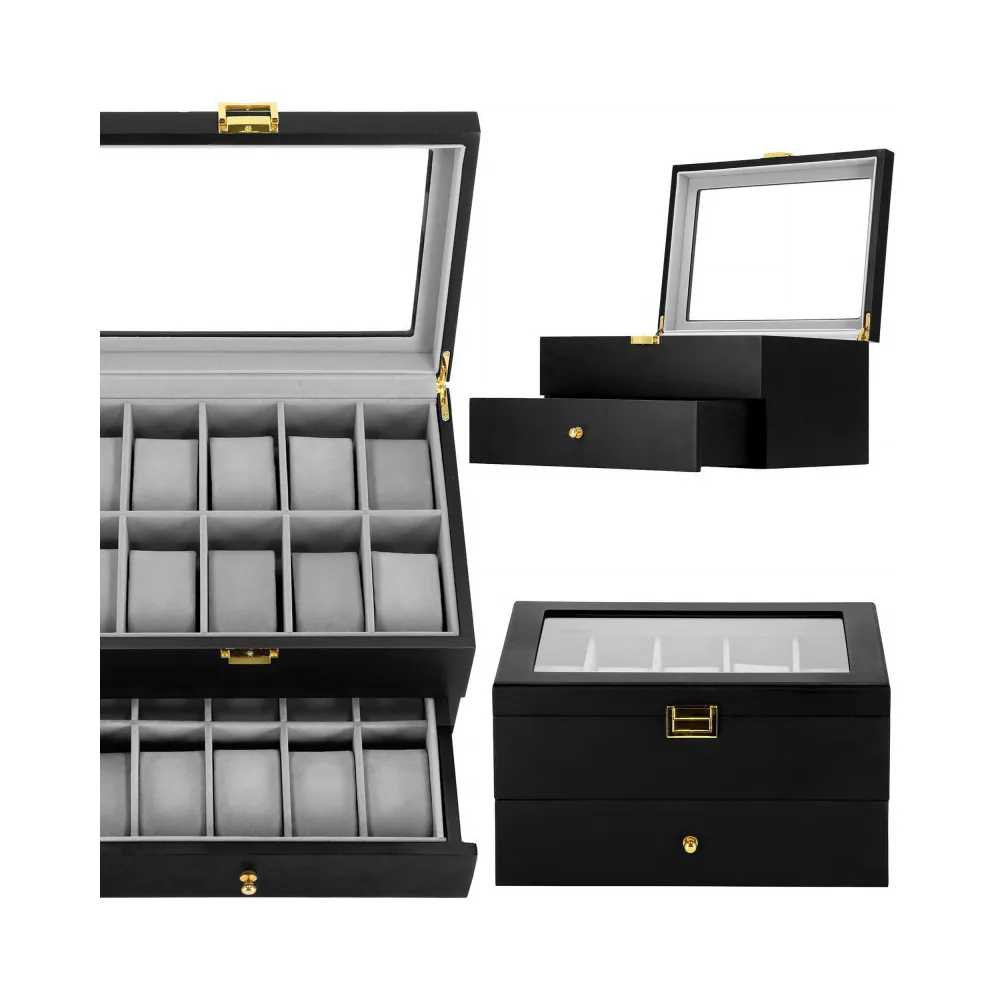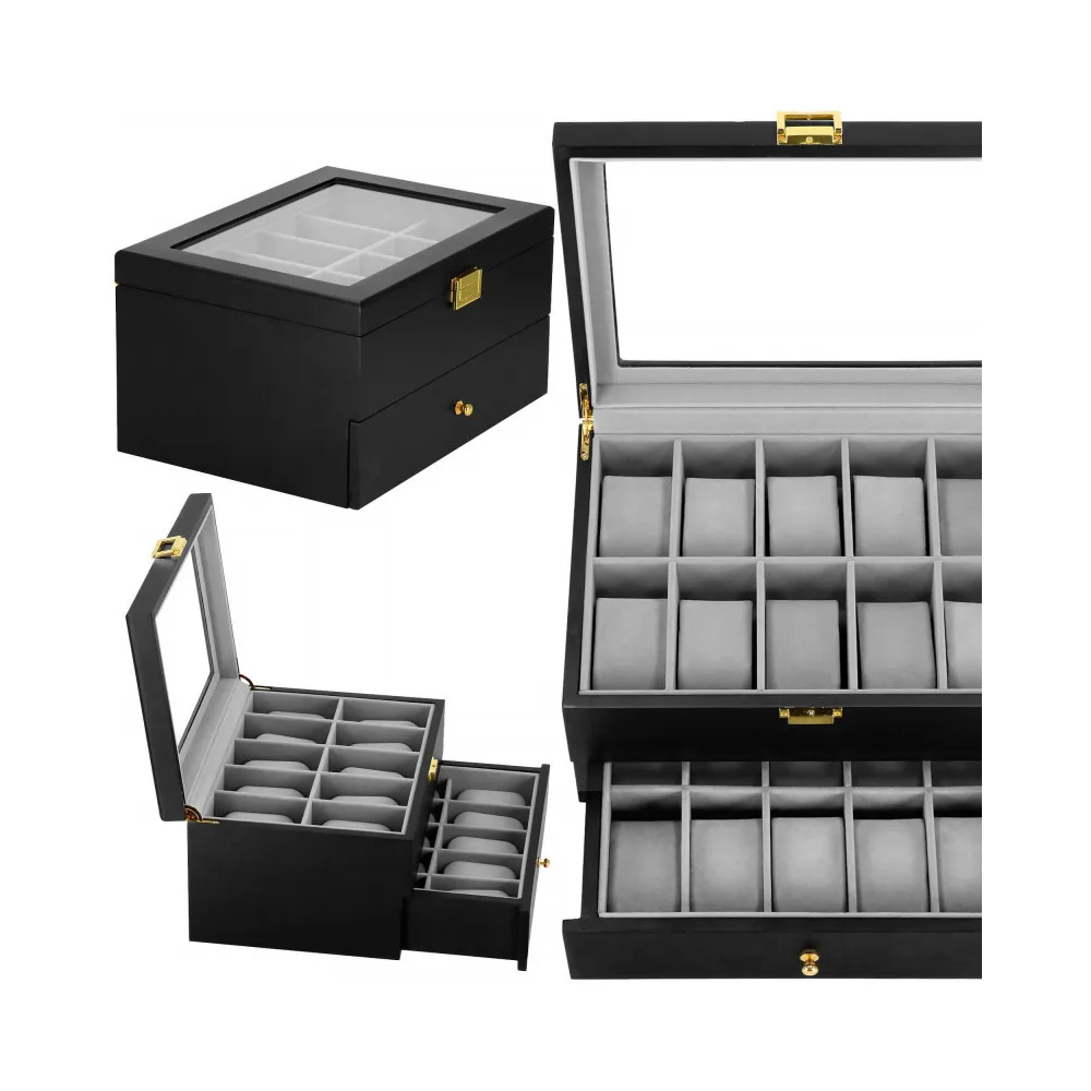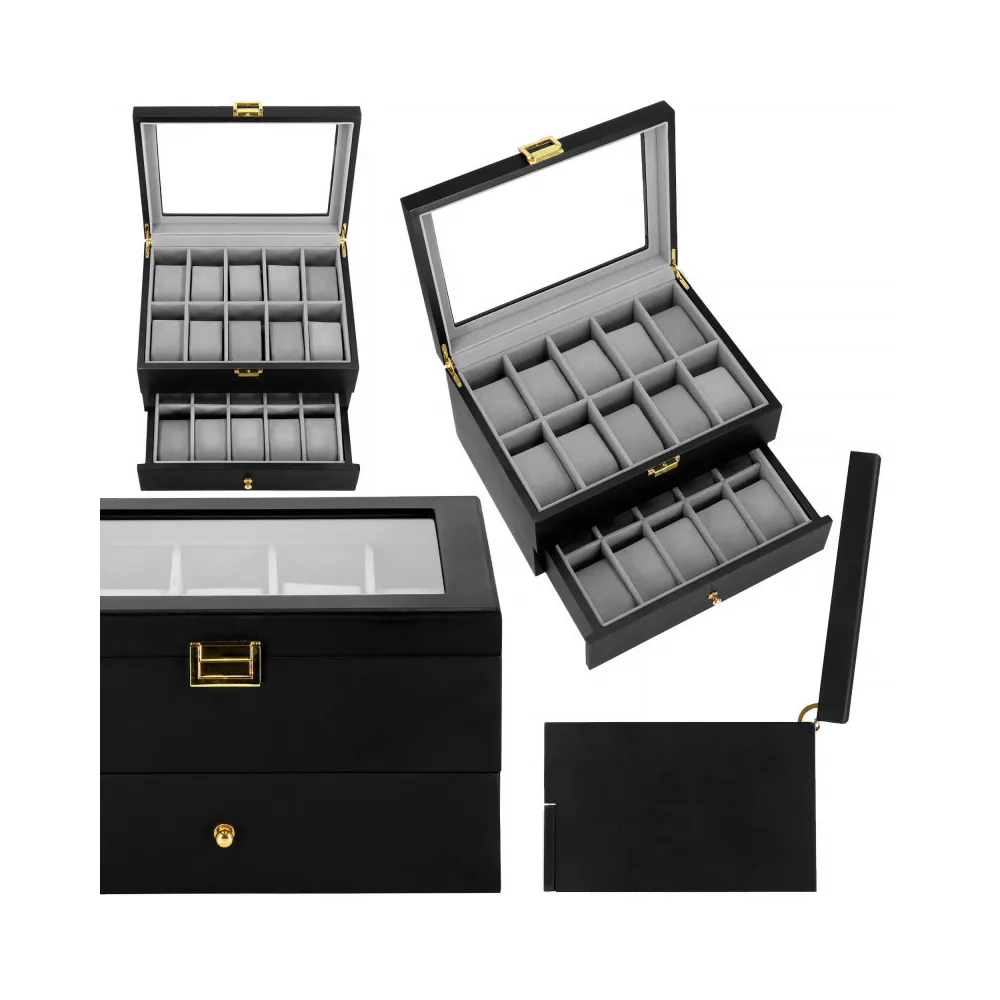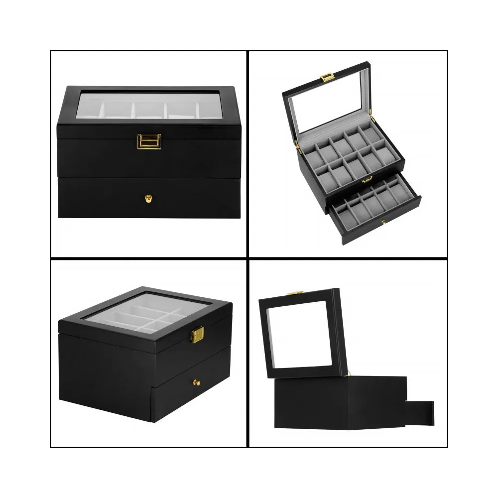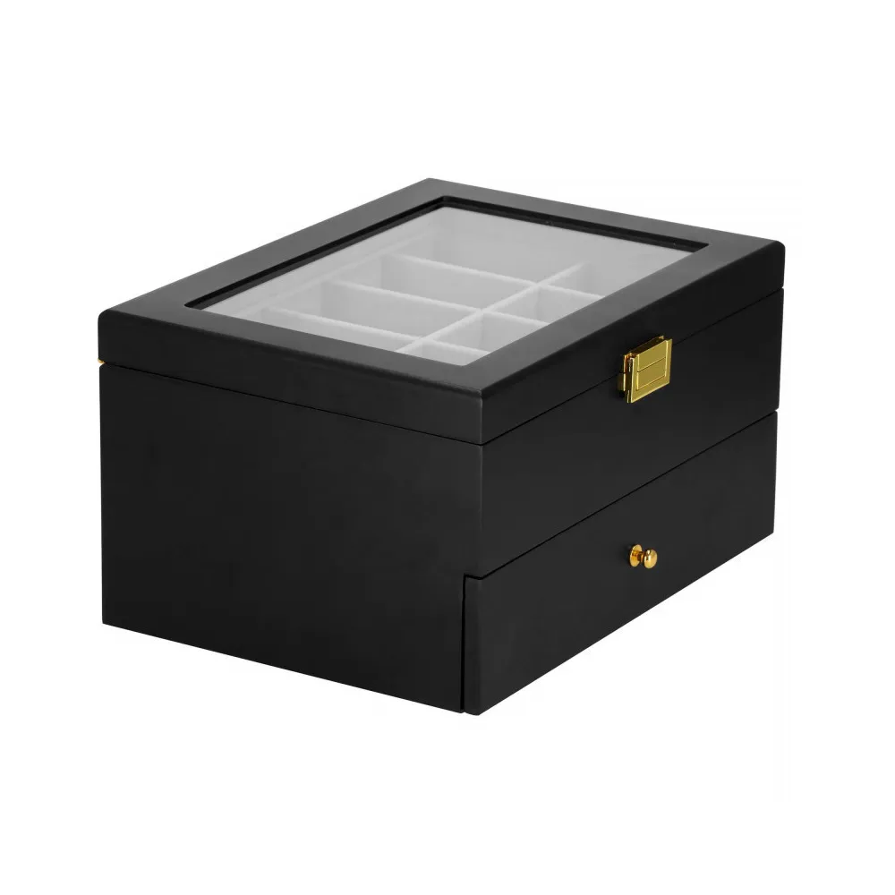 Ideálnym a stále populárnejším riešením na odkladanie cenností sú organizéry určené na hodinky, doplnky a šperky. Vyrobené s dôrazom na tie najmenšie detaily. Elegantné a praktické, kovové zatváranie. Organizér v podobe masívnej krabičky, vo vnútri je extrémne mäkká a na dotyk jemná velúrová látková podšívka. Rozmery 29 x 21 x 16,5 cm.