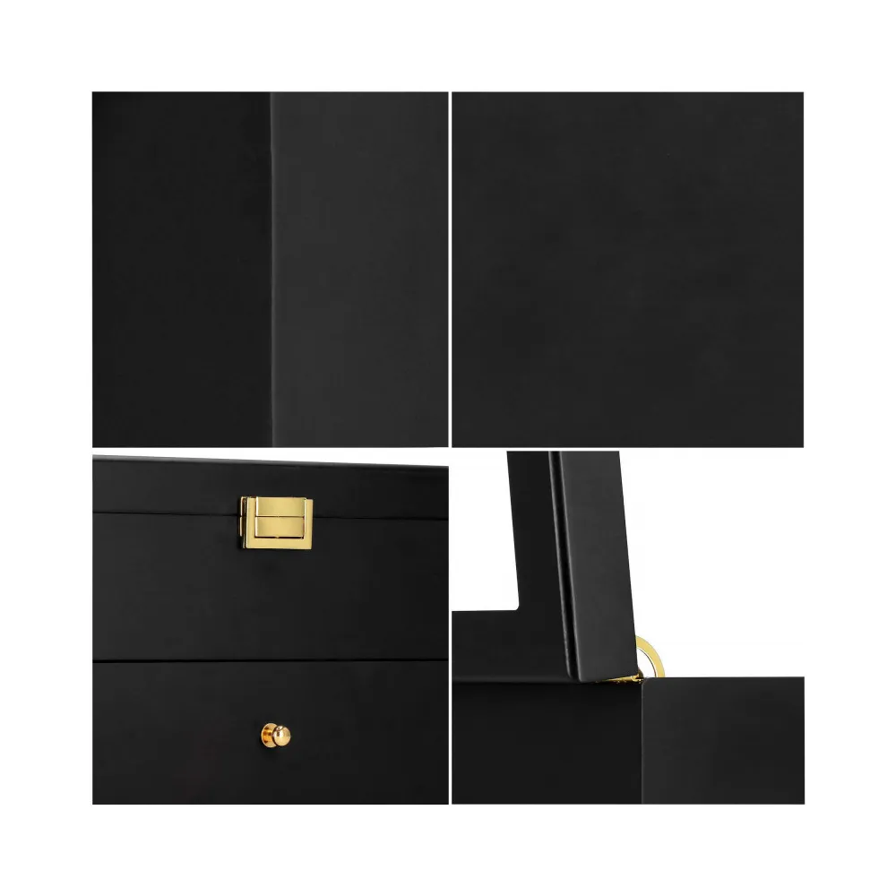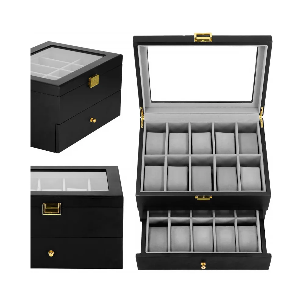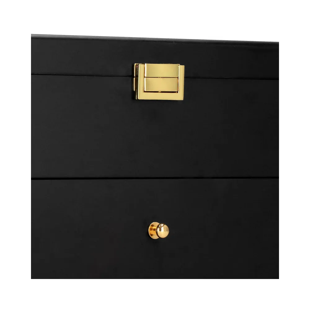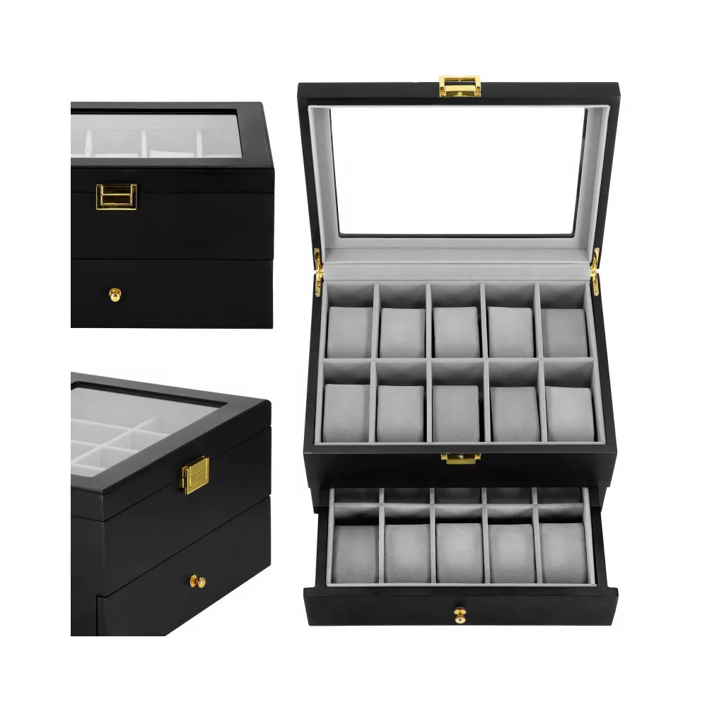 Ideálnym a stále populárnejším riešením na odkladanie cenností sú organizéry určené na hodinky, doplnky a šperky. Vyrobené s dôrazom na tie najmenšie detaily. Elegantné a praktické, kovové zatváranie. Organizér v podobe masívnej krabičky, vo vnútri je extrémne mäkká a na dotyk jemná velúrová látková podšívka. Rozmery 29 x 21 x 16,5 cm.