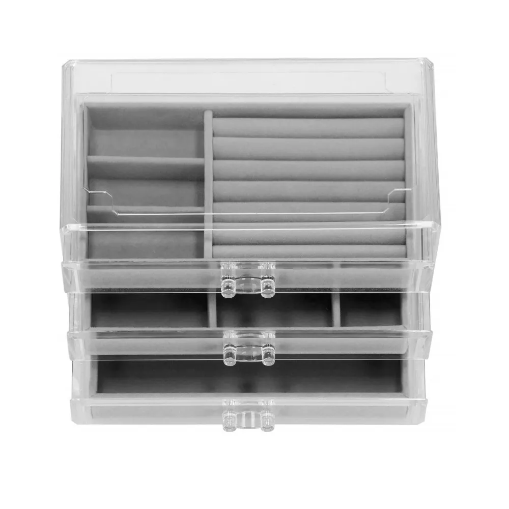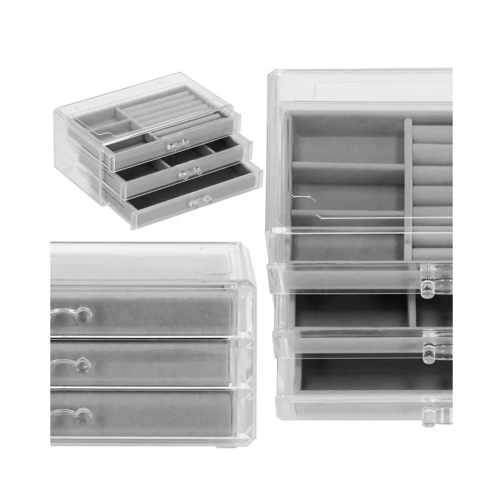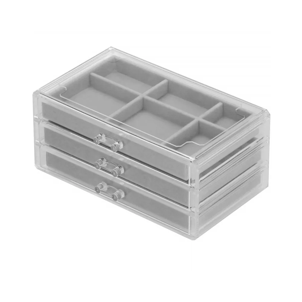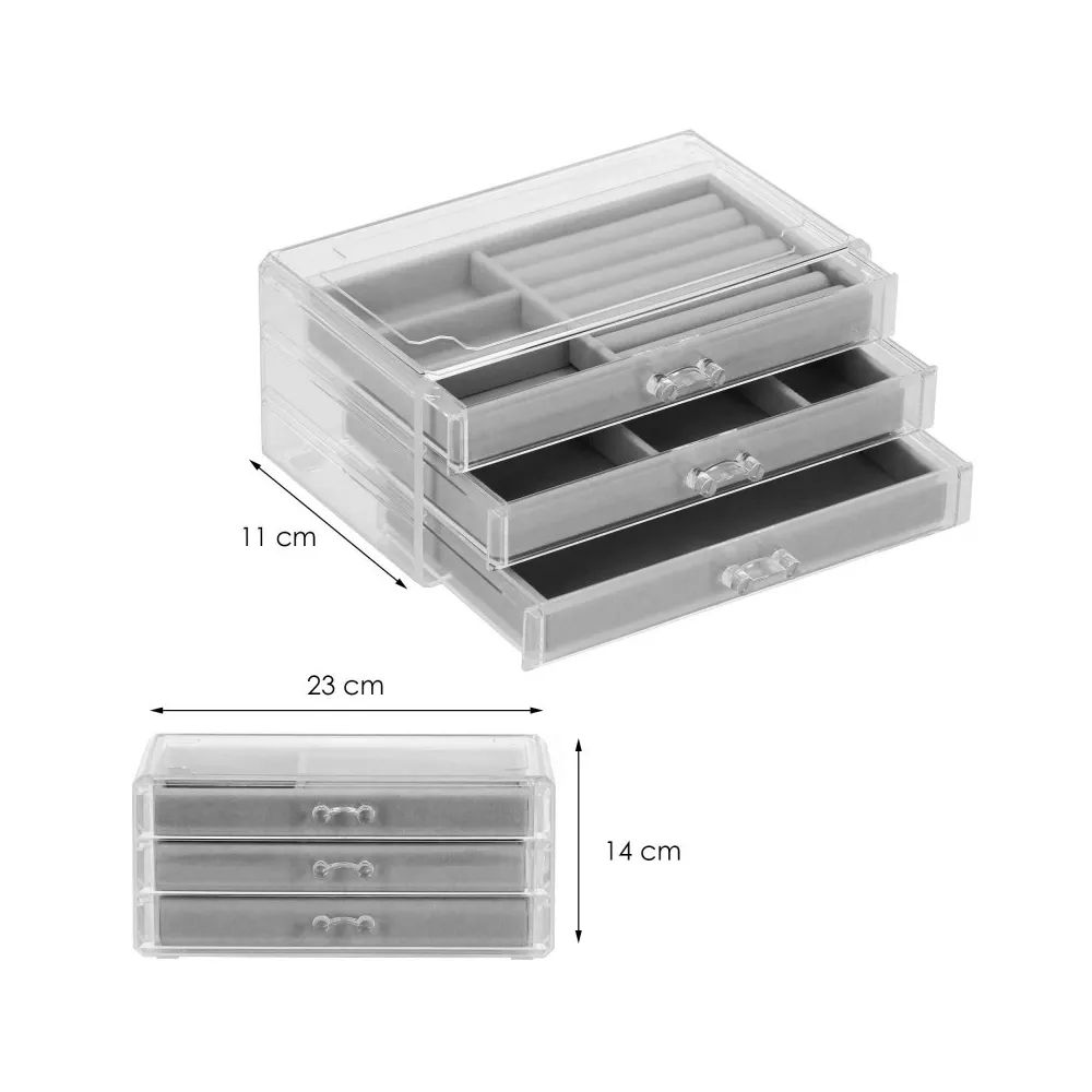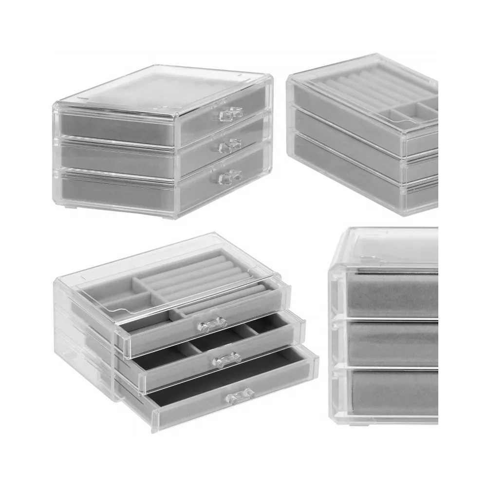 Organizér Vám umožní pohodlné a bezpečné uloženie rôznych druhov prsteňov, retiazok, náramkov, brošne a ďalších doplnkov. Ponúkaný velúrový kufor obsahuje početné priehradky, v ktorých môžete triediť cenné predmety. Vložky sú umiestnené v zásuvkách, čo šetrí miesto. Troj-úrovňový štýlový organizér v priehľadnom plaste je malý a skladný.