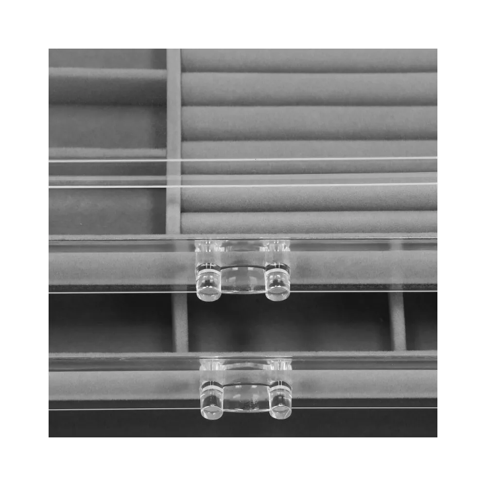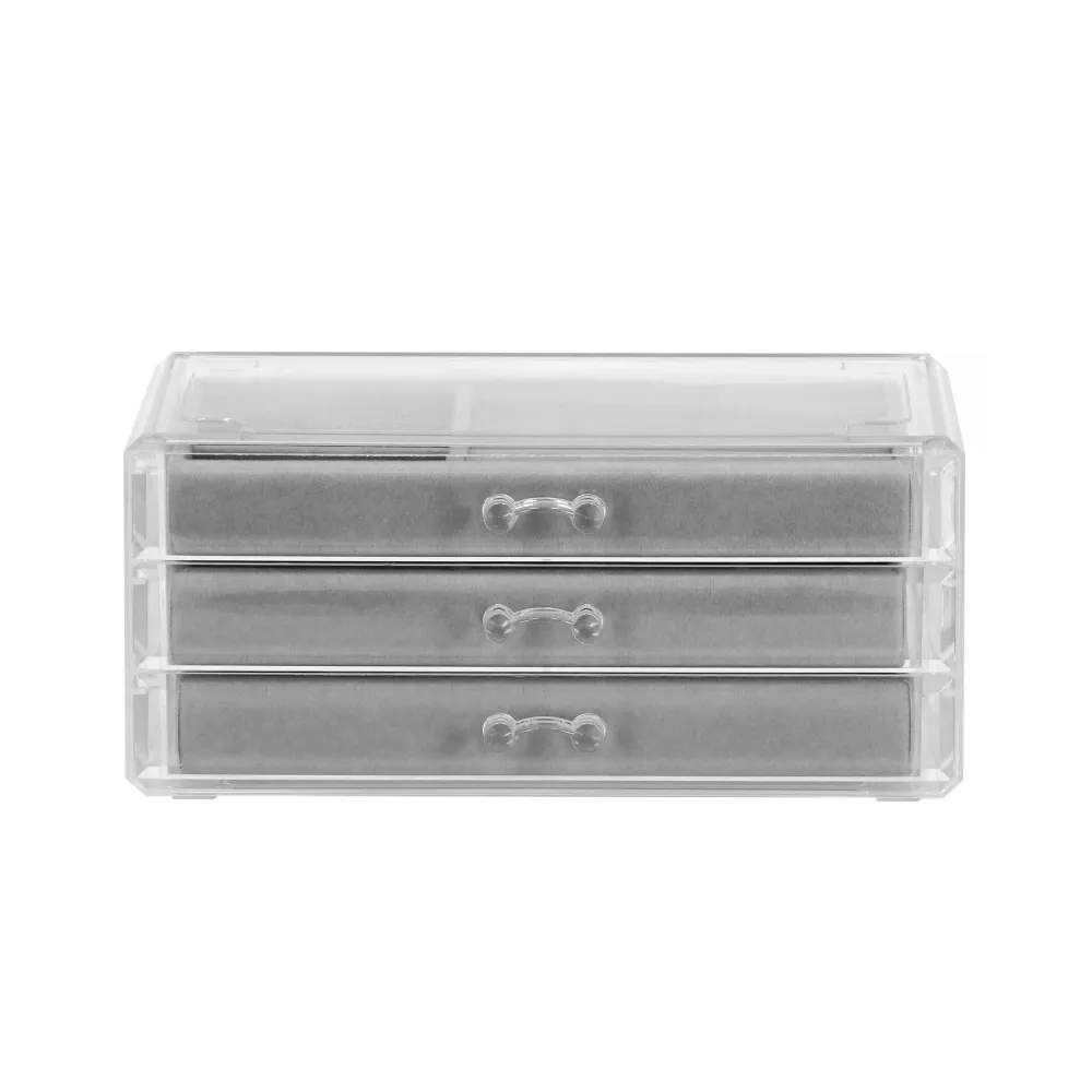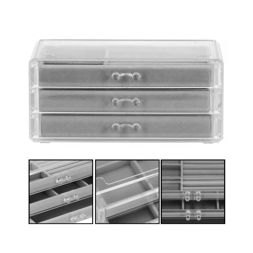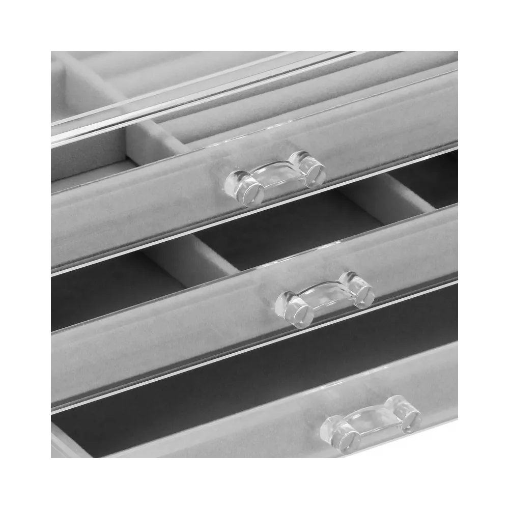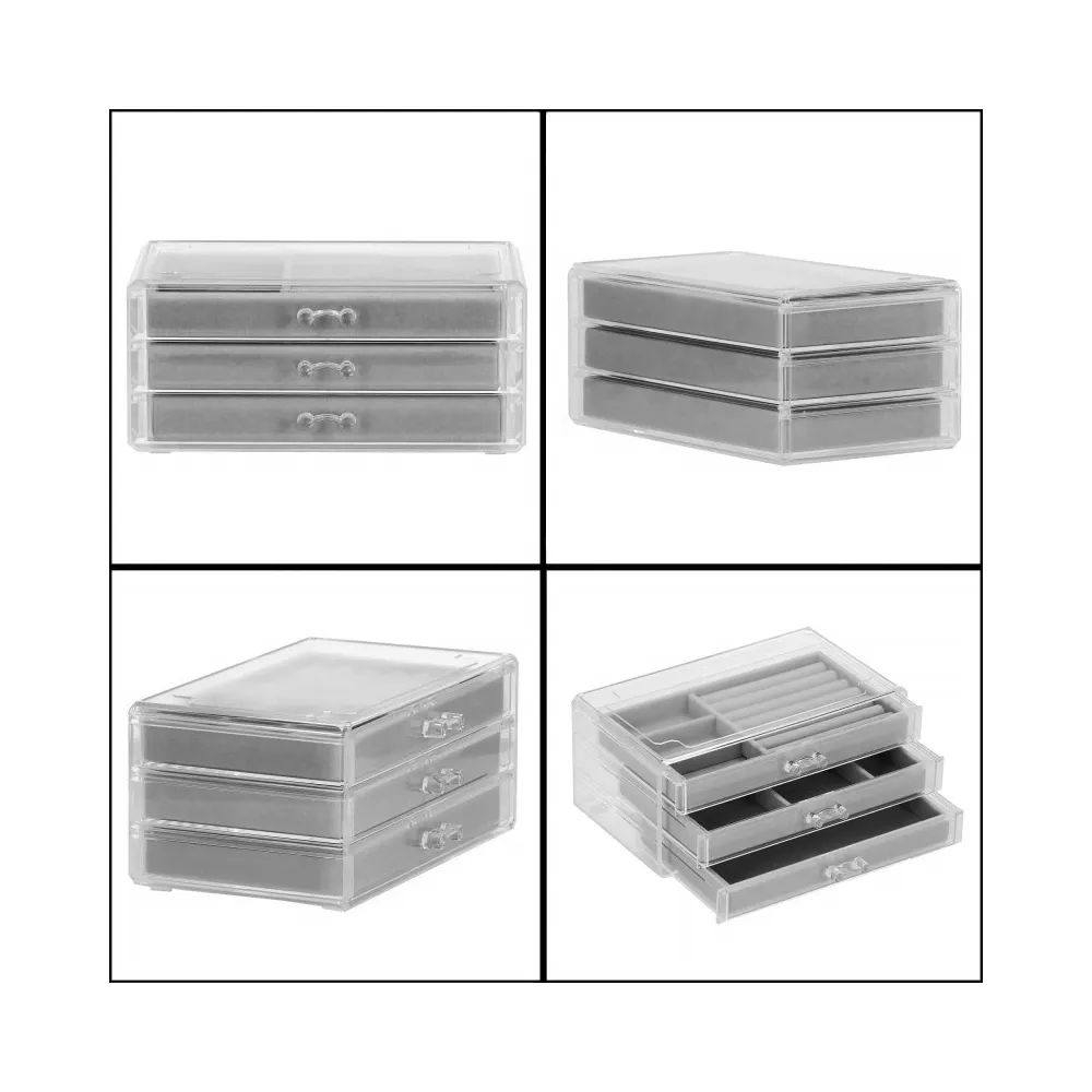 Organizér Vám umožní pohodlné a bezpečné uloženie rôznych druhov prsteňov, retiazok, náramkov, brošne a ďalších doplnkov. Ponúkaný velúrový kufor obsahuje početné priehradky, v ktorých môžete triediť cenné predmety. Vložky sú umiestnené v zásuvkách, čo šetrí miesto. Troj-úrovňový štýlový organizér v priehľadnom plaste je malý a skladný.