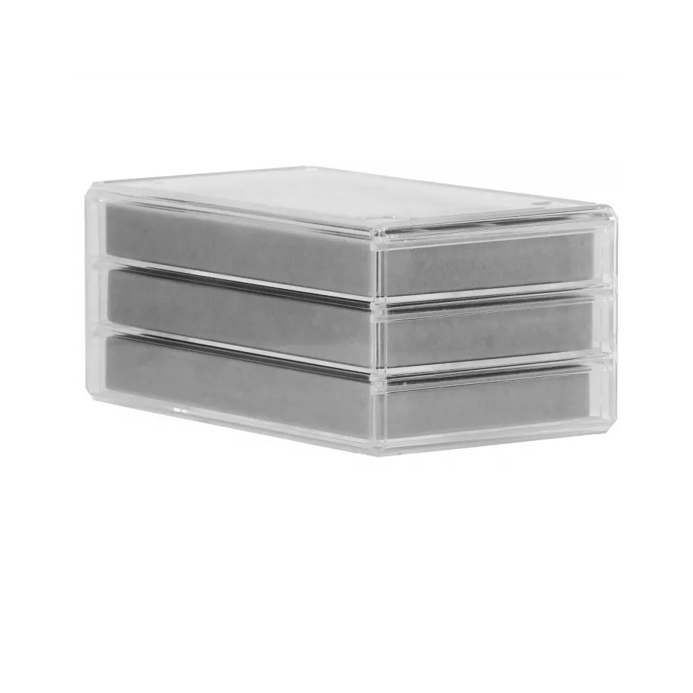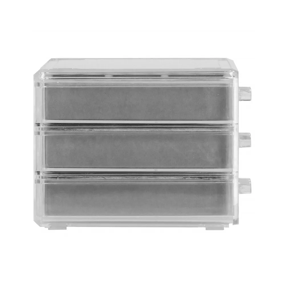 Organizér Vám umožní pohodlné a bezpečné uloženie rôznych druhov prsteňov, retiazok, náramkov, brošne a ďalších doplnkov . Ponúkaný velúrový kufor obsahuje početné priehradky, v ktorých môžete triediť cenné predmety. Vložky sú umiestnené v zásuvkách, čo šetrí miesto. Troj-úrovňový štýlový organizér v priehľadnom plaste je malý a skladný.