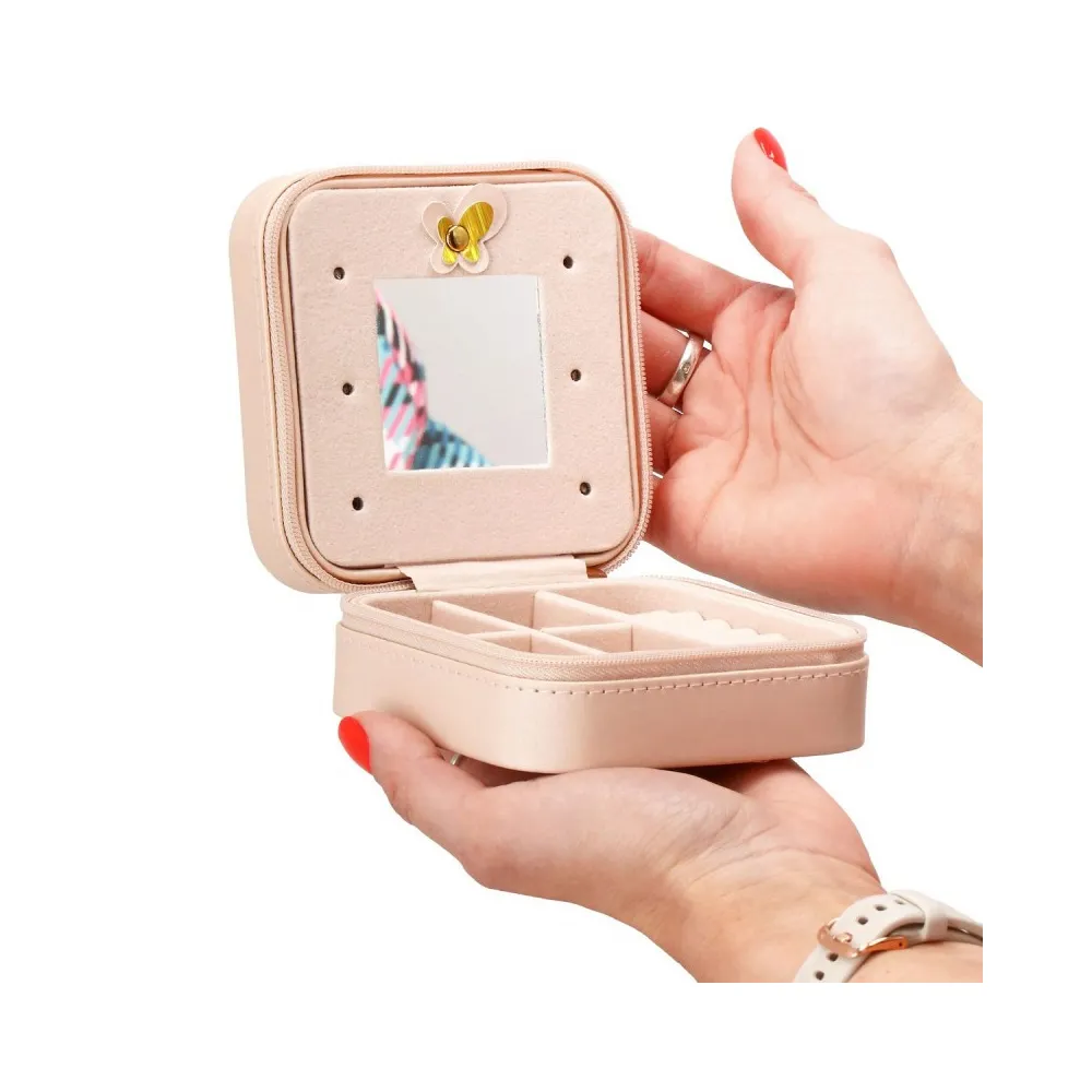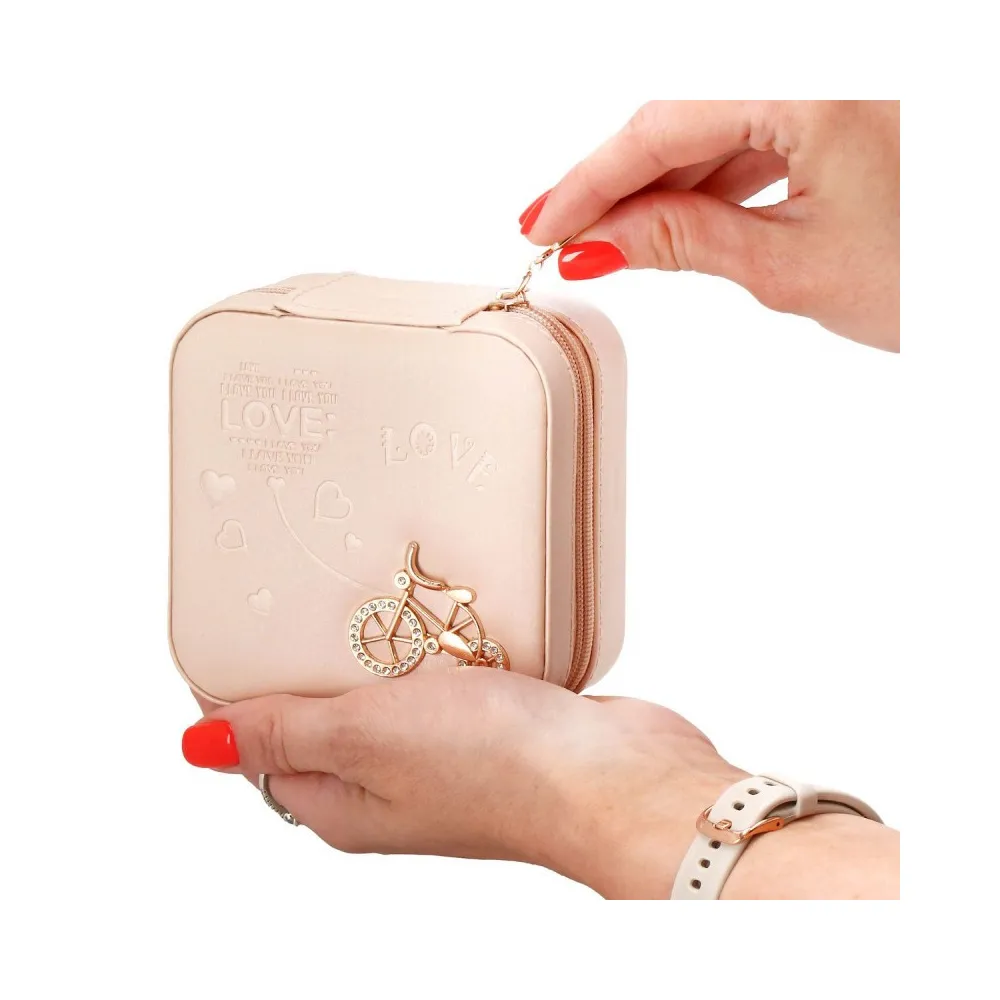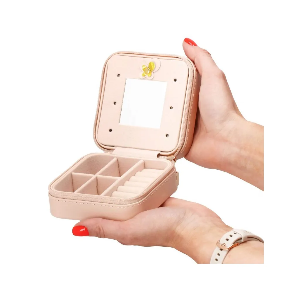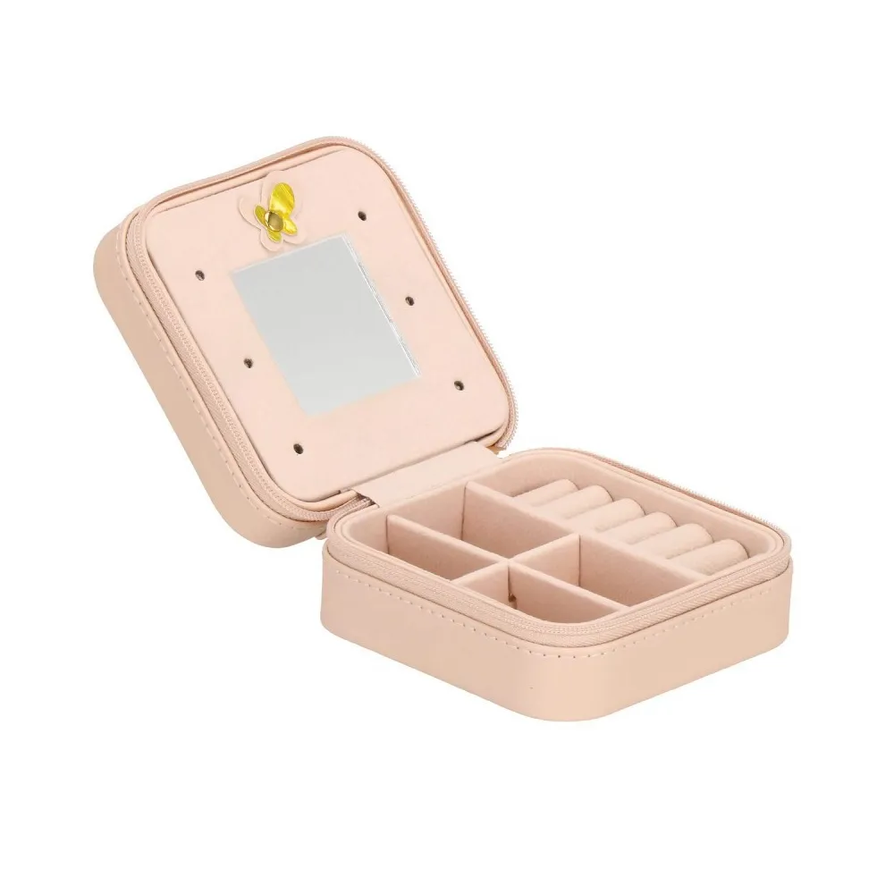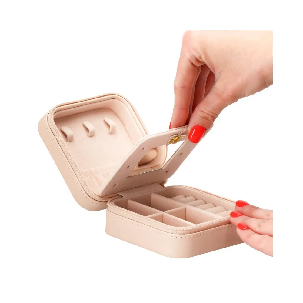 Elegantný organizér na cenné drobnosti. Ak zbierate retiazky, náramky a ďalšie vzácne drobnosti, uchovávajte ich vo svojej šperkovnici. Premyslený dizajn, množstvo úložného miesta. Príjemný velúrový materiál, zapínanie na zips, praktické zrkadlo. Vyberateľné vložky vám pomôžu s rozmiestnením. Rozmery 10x10x5 cm. Vhodné na uloženie retiazok, hodiniek, náramkov, prsteňov alebo bižutérie.