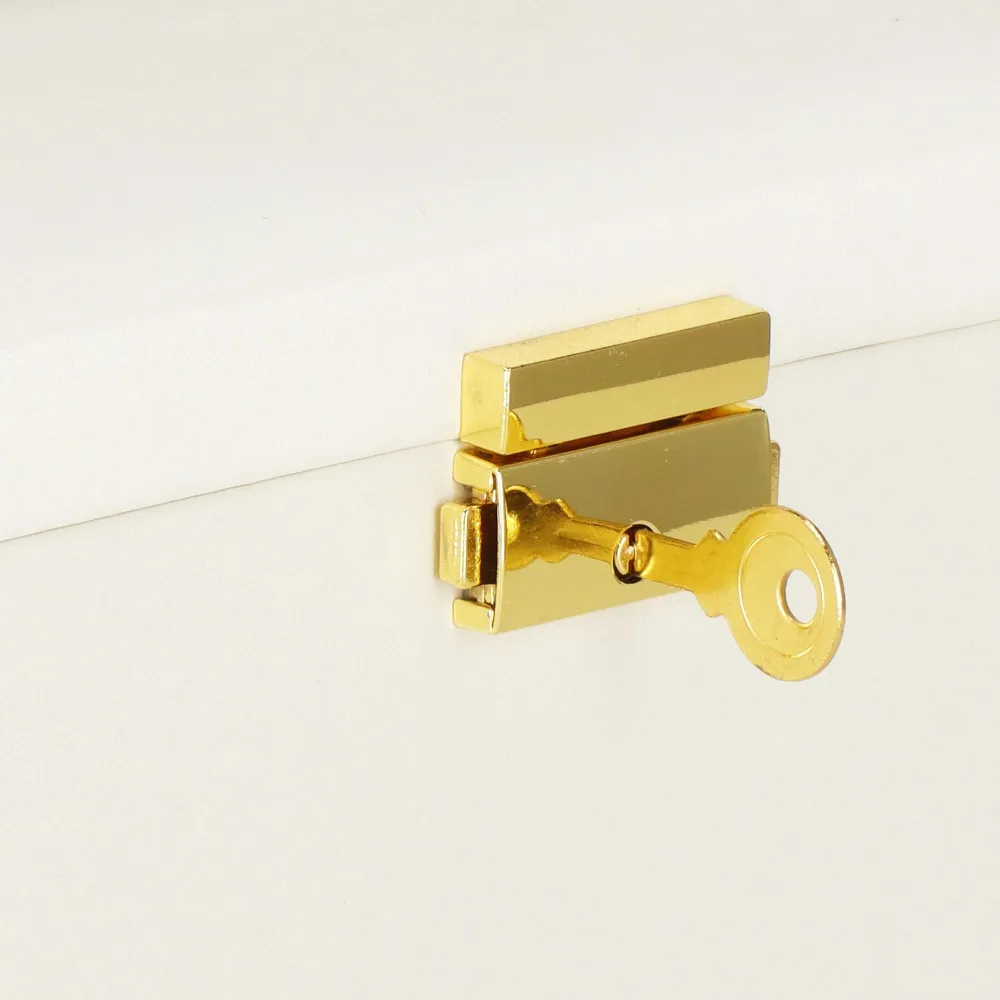 V spodnej časti sa nachádzajú dolné zásuvky s ďalším úložným priestorom , čo umožňuje uložiť ešte viac cenností. Bočné steny organizéra sa otvárajú a sú vybavené háčikmi na zavesenie príveskov alebo retiazok a tiež ďalším vreckom na drobnosti . Vnútro je potiahnuté jemným zamatovým materiálom , ktorý chráni šperky pred poškriabaním a dodáva celku luxusný vzhľad. Šperkovnica SPRINGOS CELESTE biela je skvelou voľbou pre každú ženu a zároveň ideálnym darčekom pre kamarátku, mamičku alebo inú blízku osobu .