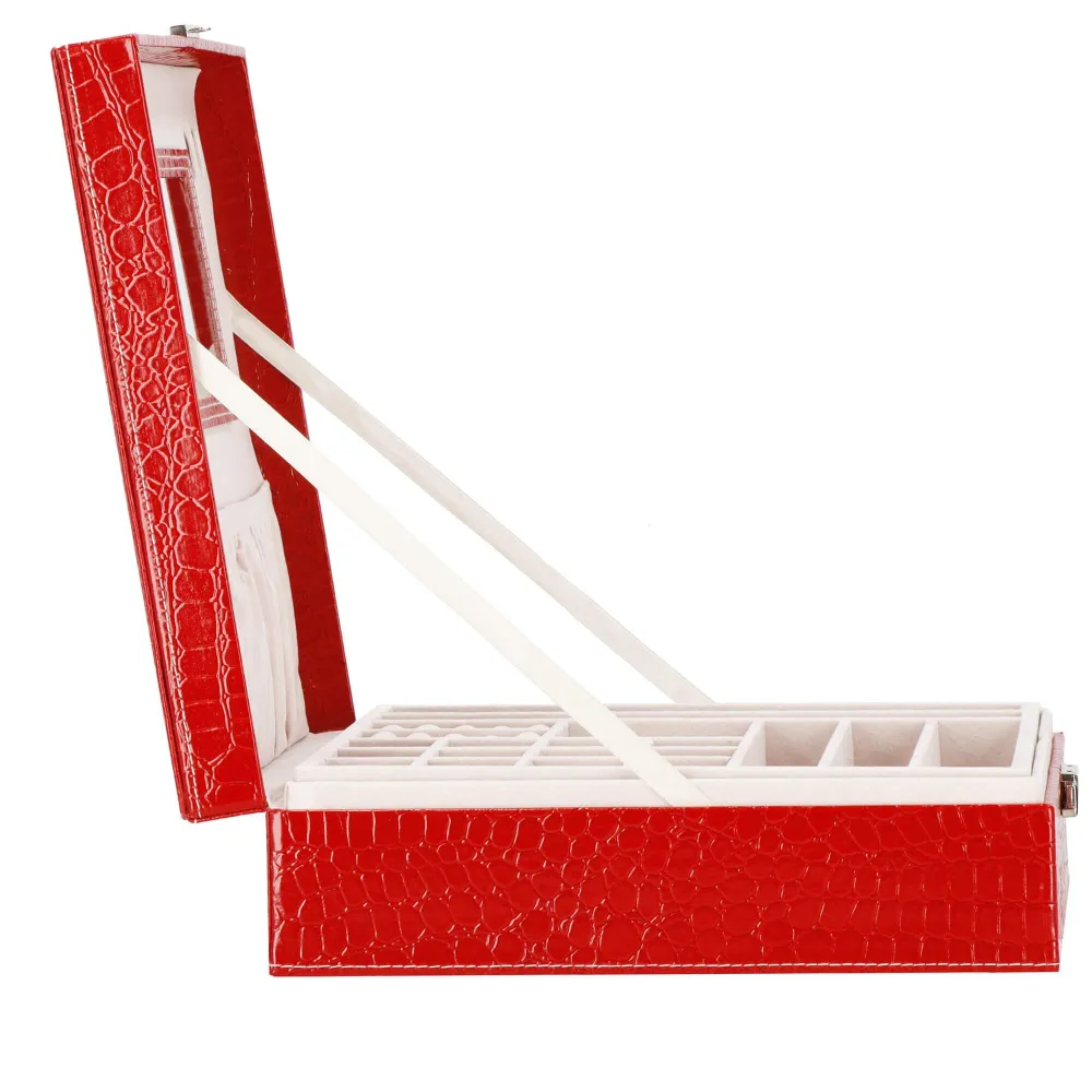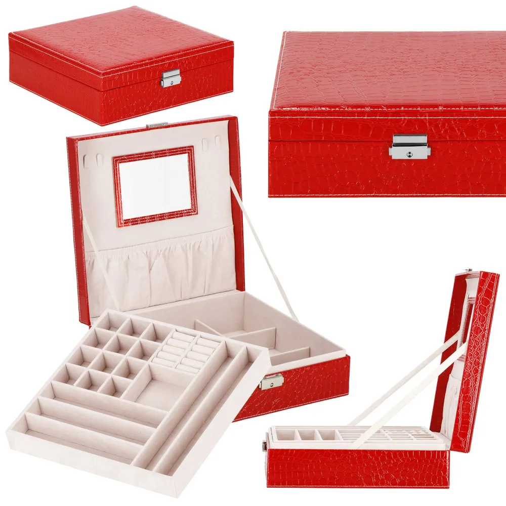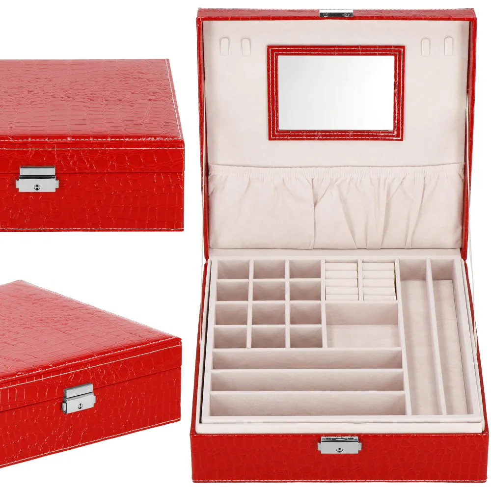 Šperkovnica SPRINGOS AURELIA červená je štýlový a praktický organizér na šperky , ktorý vám pomôže udržať všetky vaše doplnky na jednom mieste. Vďaka svojmu premyslenému vnútornému usporiadaniu ponúka priehradky na náušnice a prstene, ktoré pojmú mnoho doplnkov , a zároveň poskytuje priestranné priehradky pre väčšie šperky či iné drobnosti. Vnútri sa nachádza aj zrkadlo , ktoré vám uľahčí každodenný výber a skúšanie šperkov. Vnútorná časť je potiahnutá jemným zamatovým materiálom , ktorý chráni vaše cennosti pred poškriabaním a poškodením.