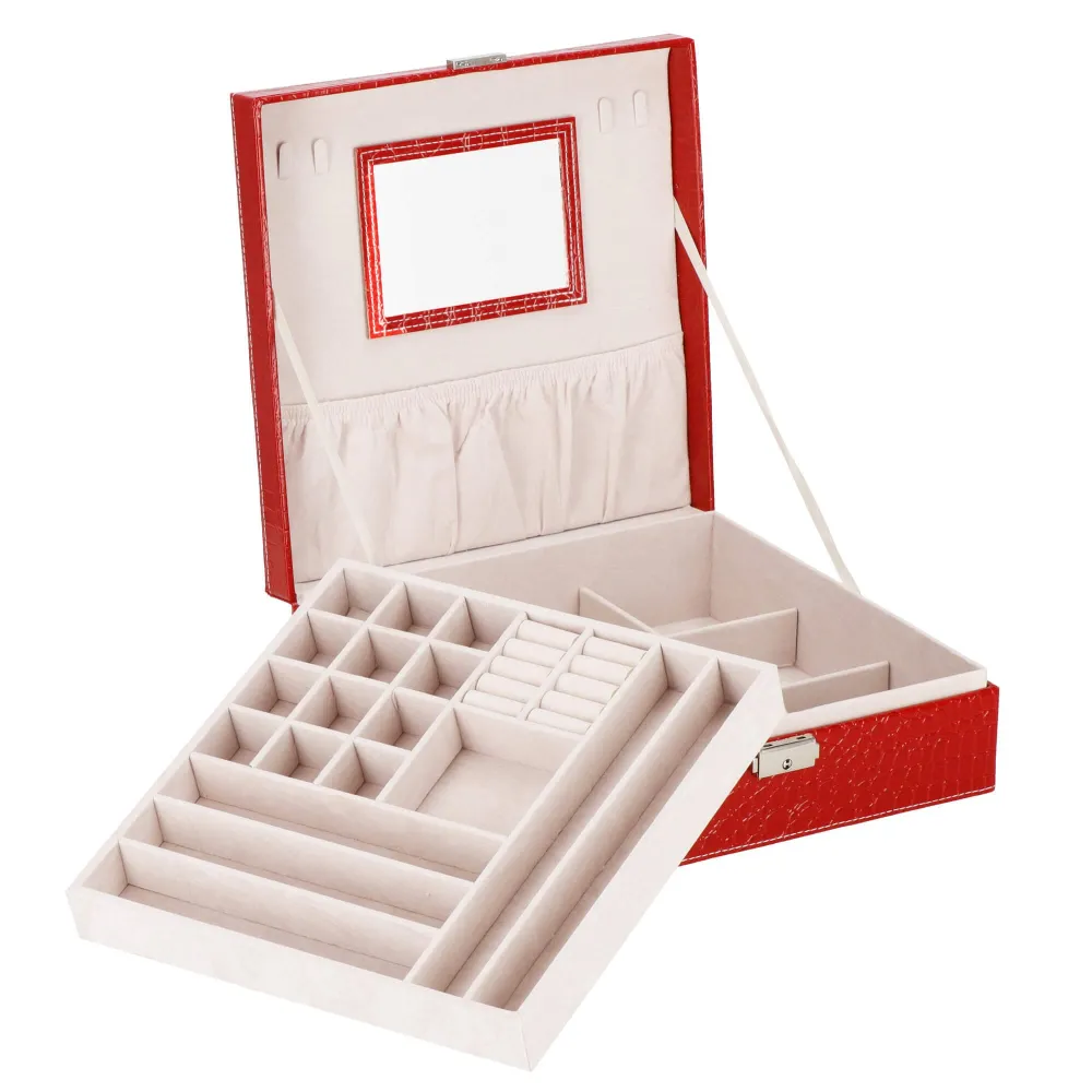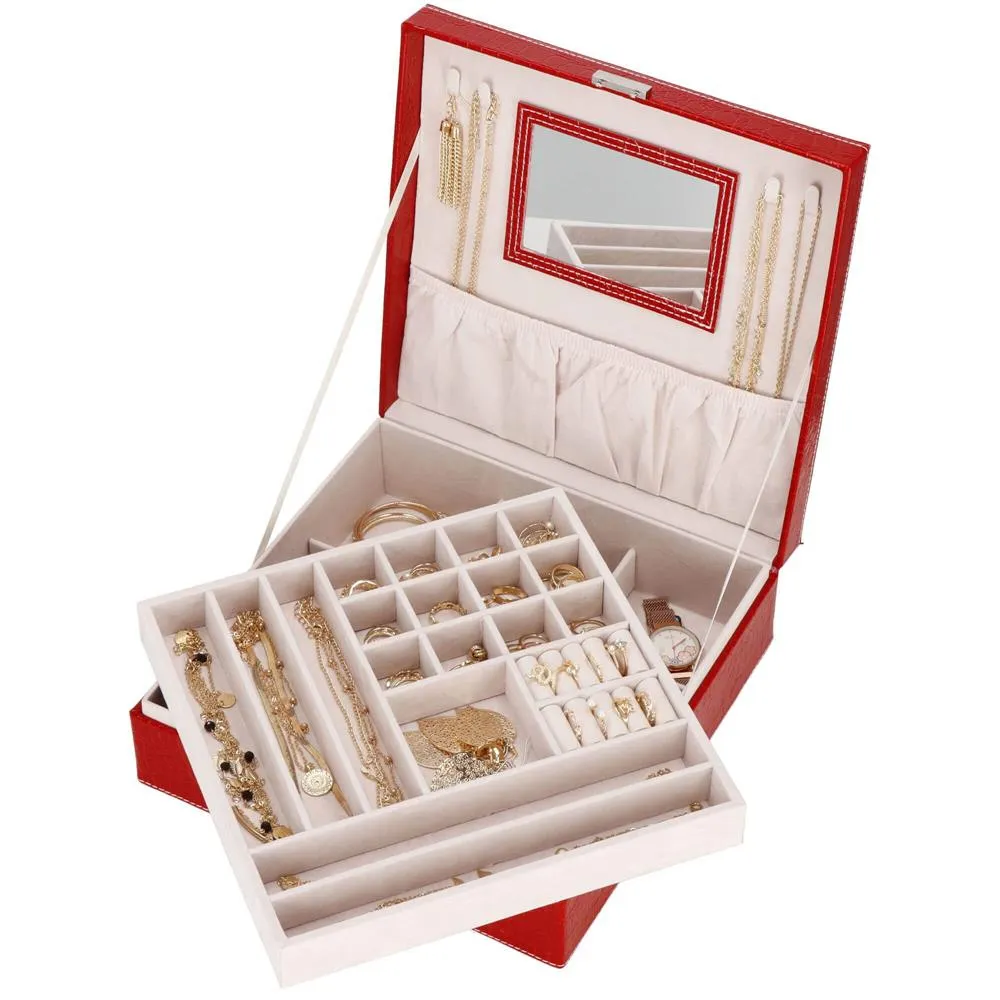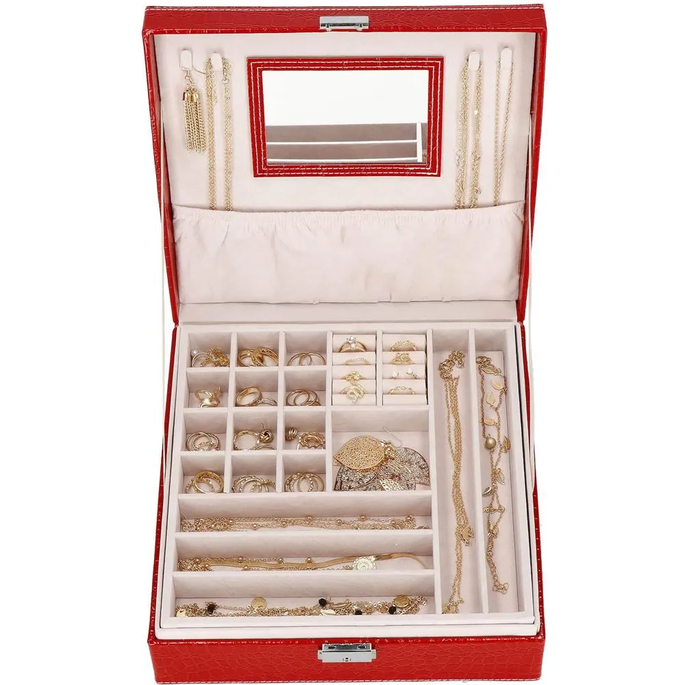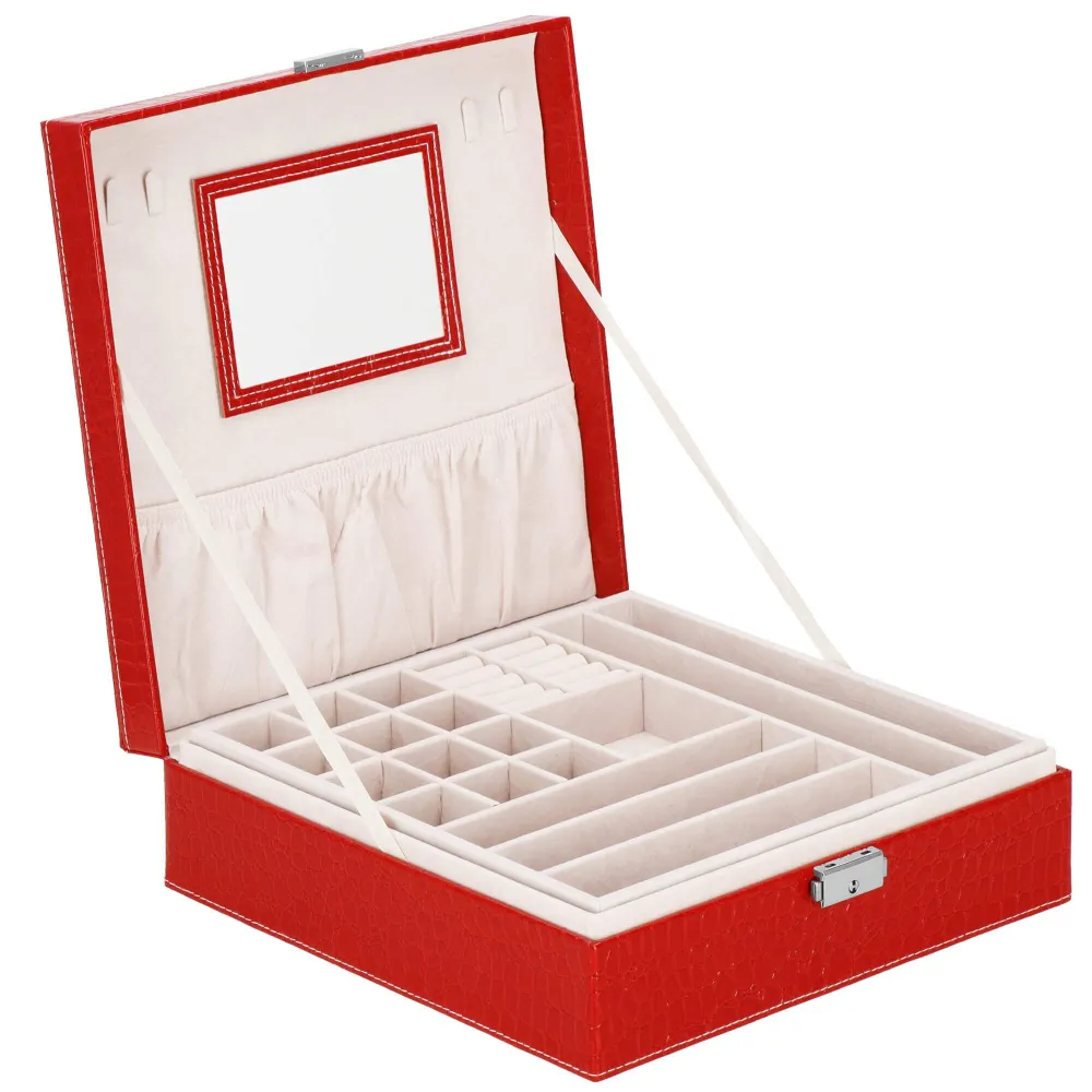 Šperkovnica SPRINGOS AURELIA červená je štýlový a praktický organizér na šperky , ktorý vám pomôže udržať všetky vaše doplnky na jednom mieste. Vďaka svojmu premyslenému vnútornému usporiadaniu ponúka priehradky na náušnice a prstene, ktoré pojmú mnoho doplnkov , a zároveň poskytuje priestranné priehradky pre väčšie šperky či iné drobnosti. Vnútri sa nachádza aj zrkadlo , ktoré vám uľahčí každodenný výber a skúšanie šperkov. Vnútorná časť je potiahnutá jemným zamatovým materiálom , ktorý chráni vaše cennosti pred poškriabaním a poškodením.