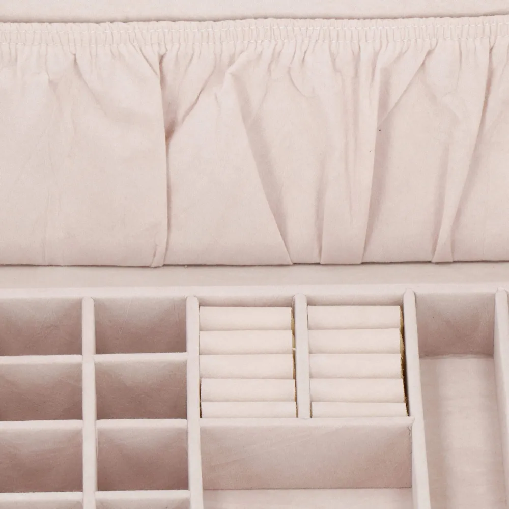 Elegantný organizér na šperky udrží všetky doplnky prehľadne na jednom mieste - môžete zabudnúť na hľadanie stratenej náušnice alebo rozpletanie náhrdelníka. Ponúka zapínanie s dvojitým patentom as kľúčom, priestranné priehradky, zamatový vnútorný materiál a praktické zrkadlo. Priehradky na náušnice a prstene pojmú mnoho doplnkov a vďaka kompaktným rozmerom sa ľahko zmestí aj do batožiny. Ideálna ako darček pre kamarátku, mamičku či blízku ženu.