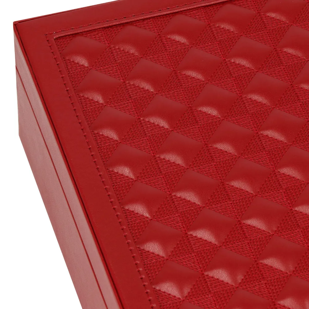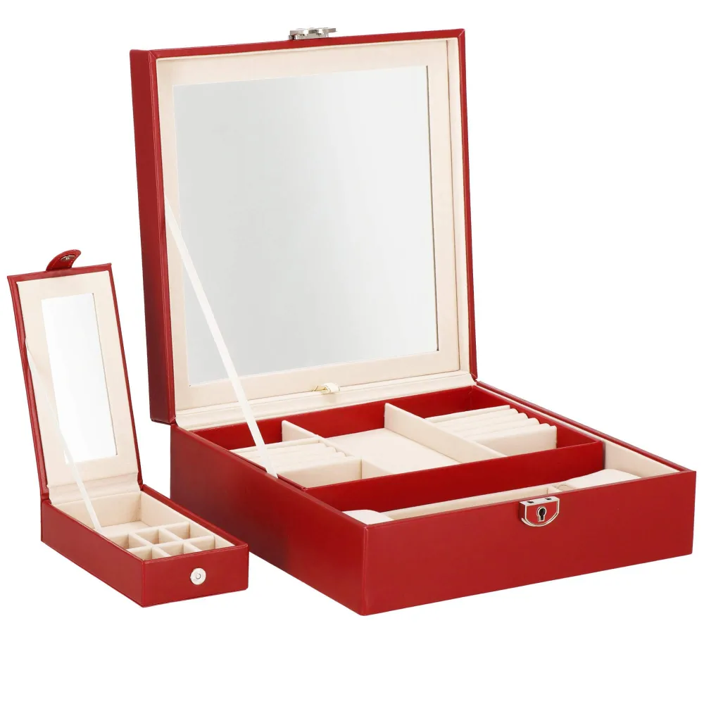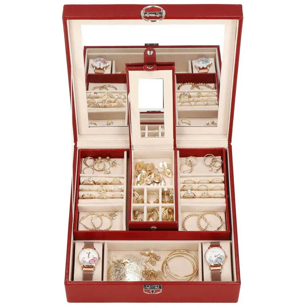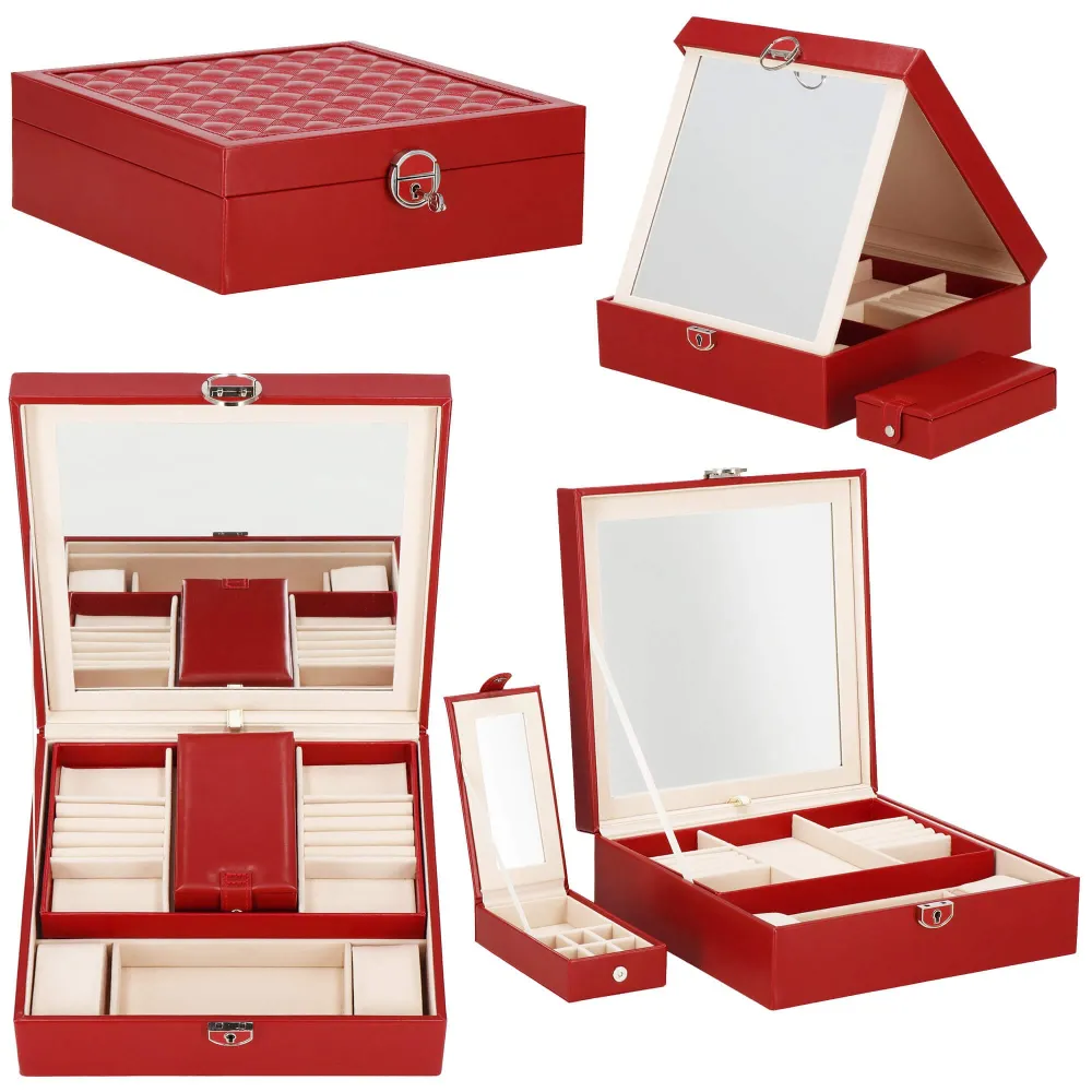 Šperkovnica SPRINGOS NOLITA červená je elegantný a praktický organizér na šperky , ktorý pomáha udržať všetky vaše doplnky prehľadne usporiadané a bezpečne uložené. Vďaka zámku s kľúčom máte istotu, že obsah zostane chránený, a odnímateľný cestovný organizér aj so zrkadielkom vo vnútri vám umožní vziať si najobľúbenejšie šperky pohodlne aj na cesty. Priehradky na náušnice a prstene pojmú mnoho doplnkov , takže zabudnete na zdĺhavé hľadanie stratenej náušnice alebo rozpletanie náhrdelníka. Nechýbajú ani 2 priehradky pre hodinky a náramky , priestranné priehradky pre ďalšie šperky a veľké zrkadlo s nastaviteľným sklonom , ktoré uľahčia každodennú prípravu.