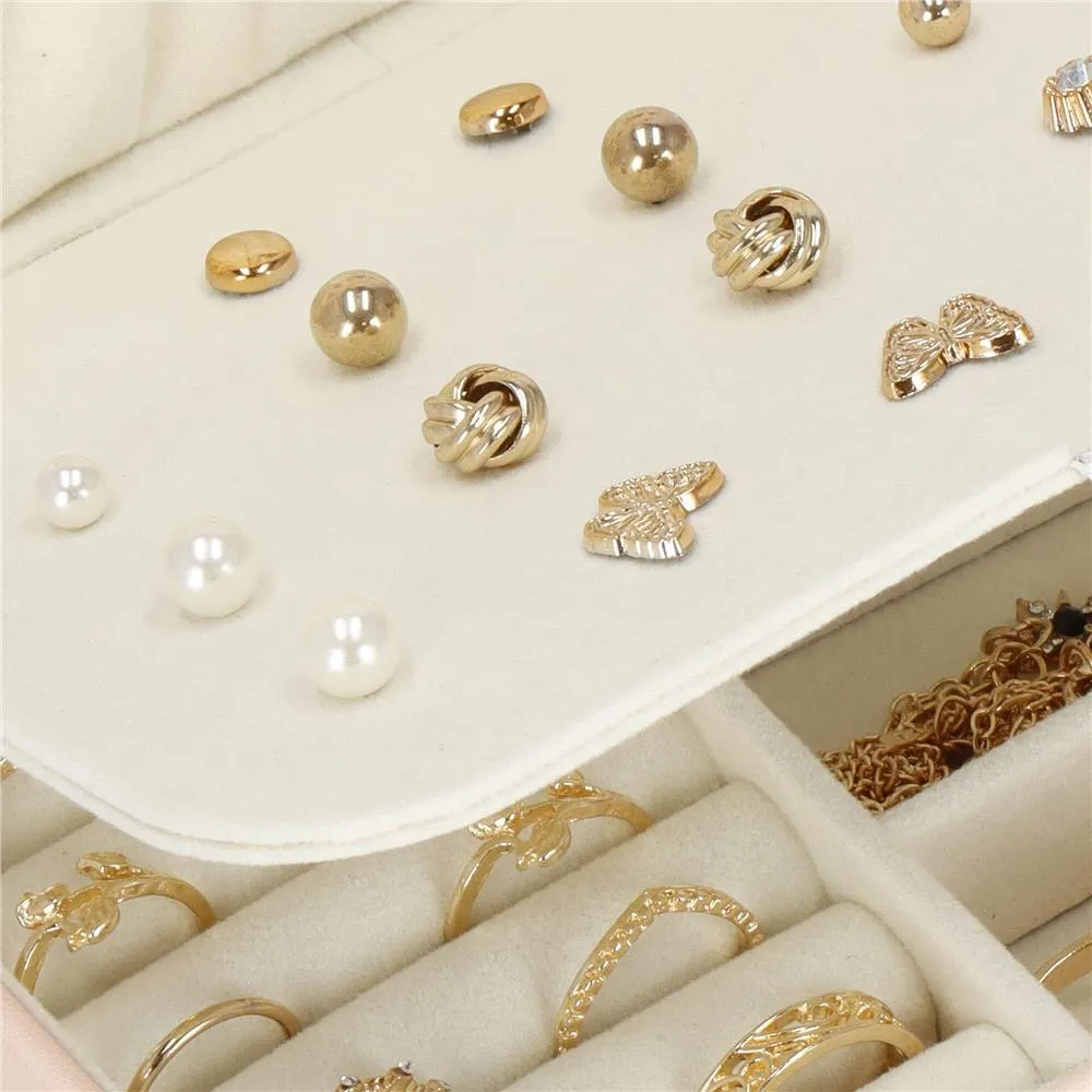 Organizér na šperky poskytuje ideálne miesto na uloženie šperkov tak, aby sa nestratili alebo nezamotali. Šperkovnica ponúka priestranné priehradky na náušnice a prstene, kompaktnú veľkosť vhodnú aj na cesty a zapínanie na cvoček. Vnútorný zamatový materiál je bezpečný pre šperky. Ideálne aj ako darček.
