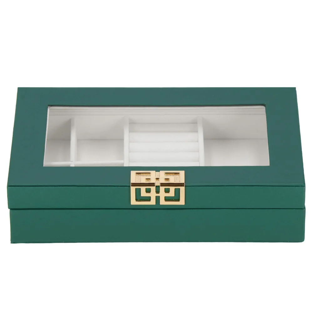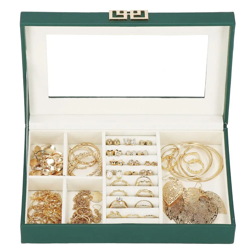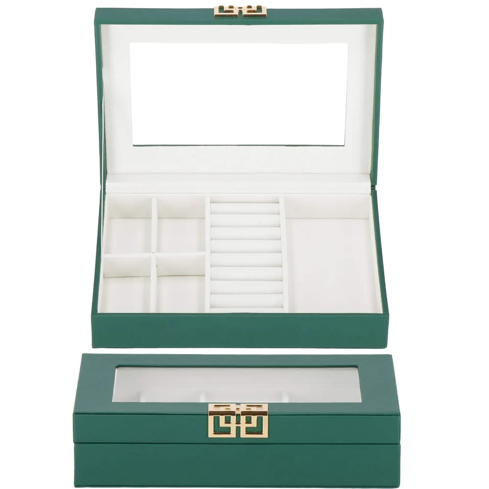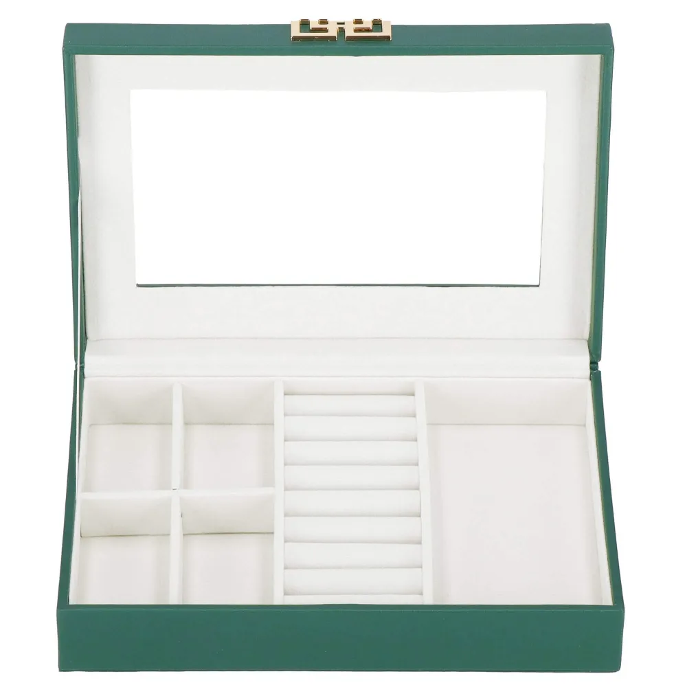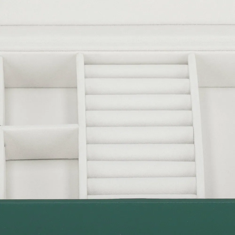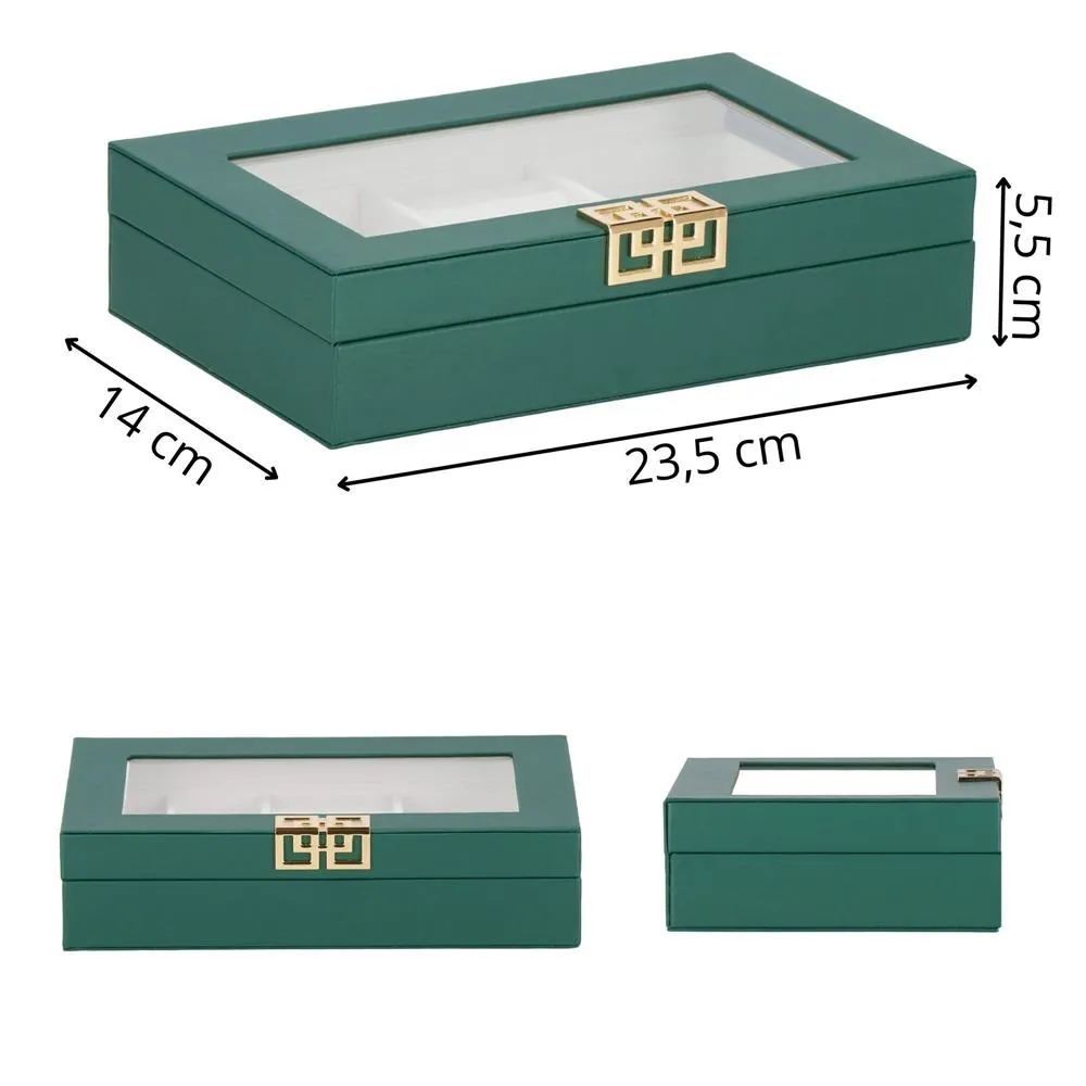 Šperkovnica SPRINGOS ELORY zelená je štýlový a praktický organizér na šperky , ktorý vám pomôže udržať všetky vaše doplnky na jednom mieste. Vďaka svojmu premyslenému vnútornému usporiadaniu ponúka priehradky na náušnice a prstene, ktoré pojmú mnoho doplnkov , a zároveň poskytuje priestranné priehradky pre väčšie šperky či iné drobnosti. Vnútorná časť je potiahnutá jemným zamatovým materiálom , ktorý chráni vaše cennosti pred poškriabaním a poškodením.