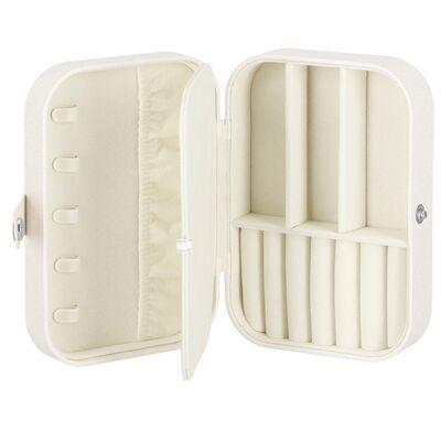 Organizér na šperky poskytuje ideálne miesto na uloženie šperkov tak, aby sa nestratili alebo nezamotali. Šperkovnica ponúka priestranné priehradky na náušnice a prstene, kompaktnú veľkosť vhodnú aj na cesty a zapínanie na cvoček. Vnútorný zamatový materiál je bezpečný pre šperky. Ideálne aj ako darček.