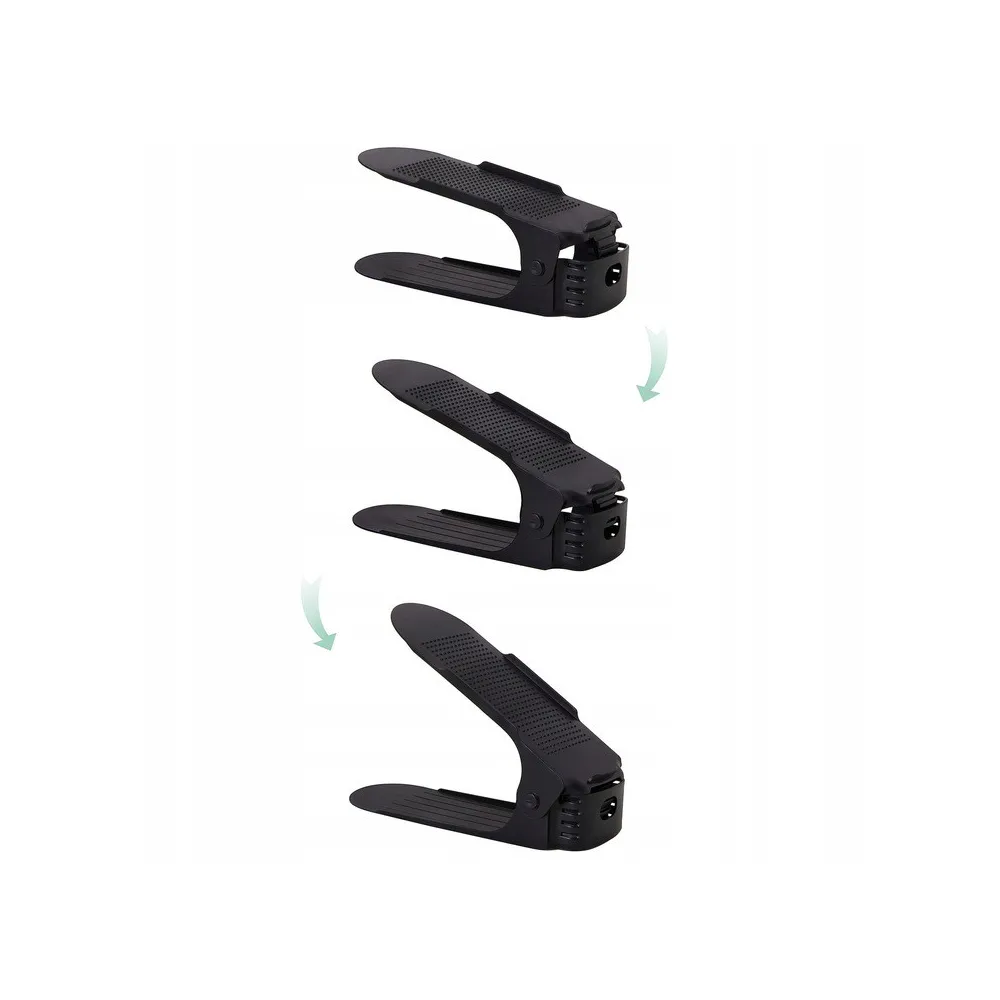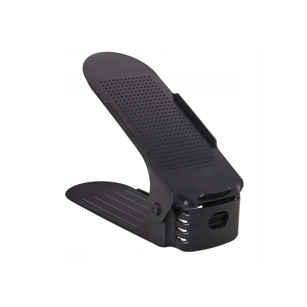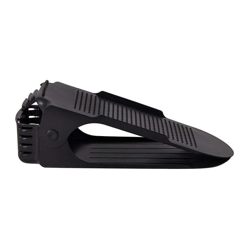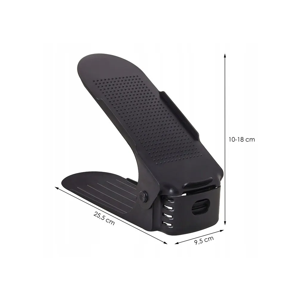 Plastový držiak na obuv, s ktorým ušetríte polovicu miesta av botníku budete mať opäť dokonalý prehľad a poriadok. Vhodný pre väčšinu typov obuvi do veľkosti 43. Organizér nielen šetrí miesto, ale aj chráni topánky pred poškodením a ušpinením. Protišmykový povrch, zarážky a nastaviteľná výška.