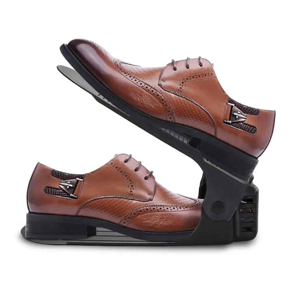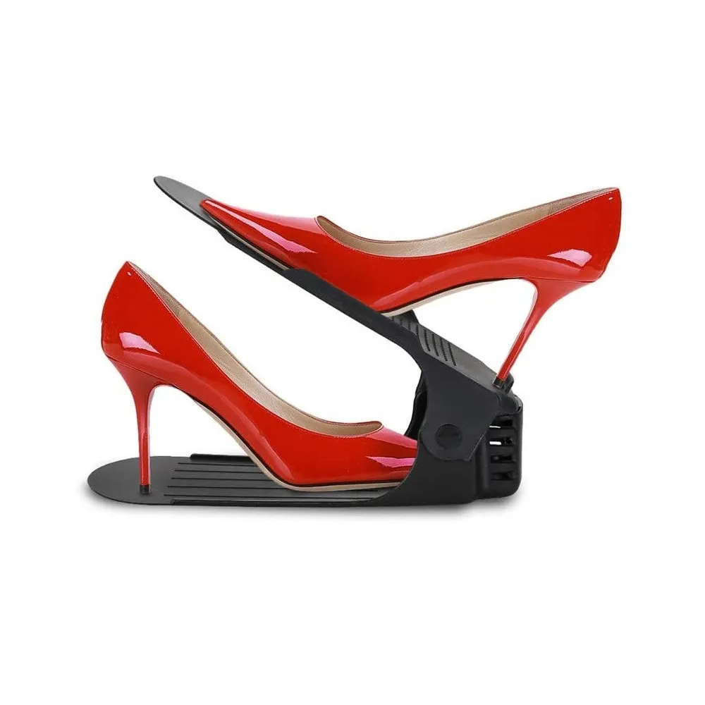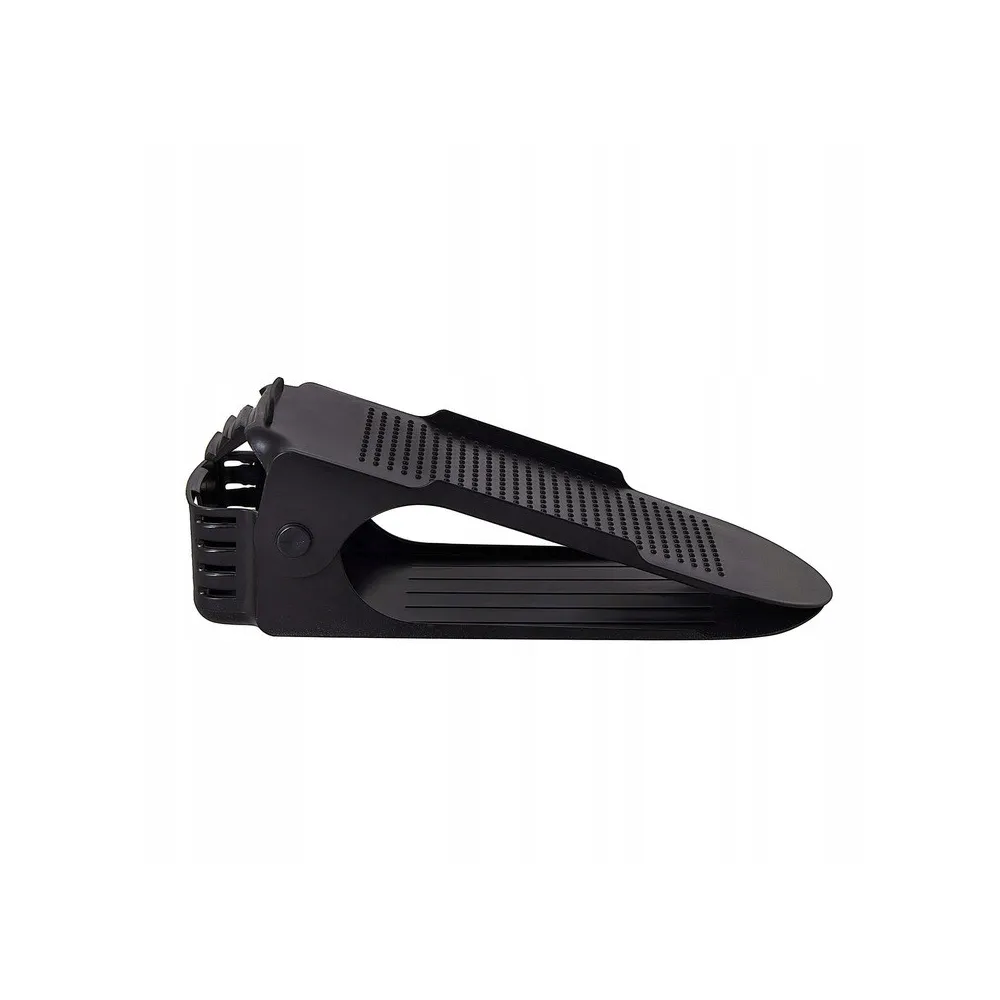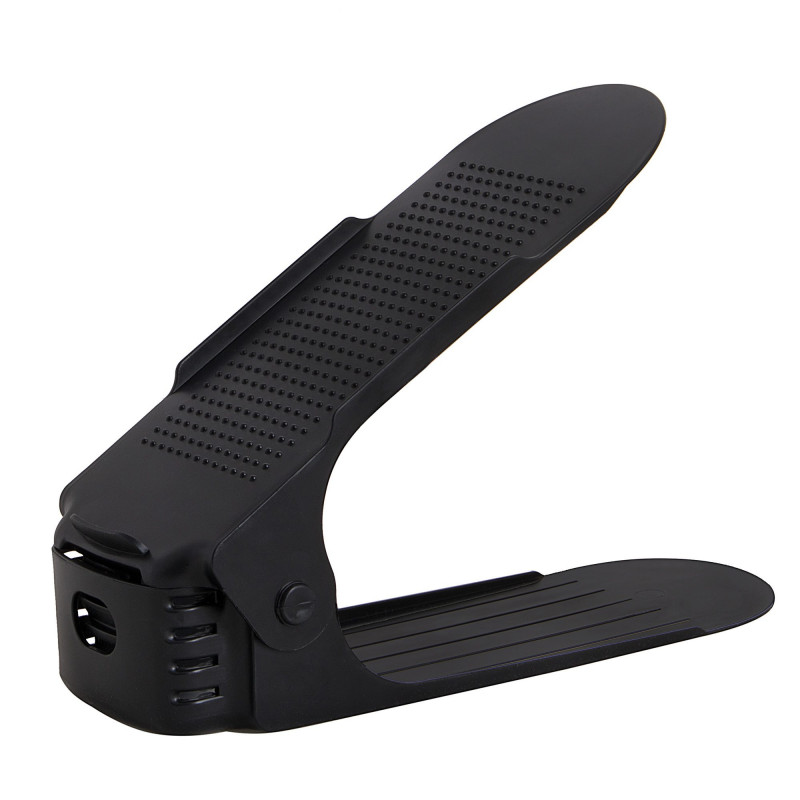 Plastový držiak na obuv, s ktorým ušetríte polovicu miesta av botníku budete mať opäť dokonalý prehľad a poriadok. Vhodný pre väčšinu typov obuvi do veľkosti 43. Organizér nielen šetrí miesto, ale aj chráni topánky pred poškodením a ušpinením. Protišmykový povrch, zarážky a nastaviteľná výška.