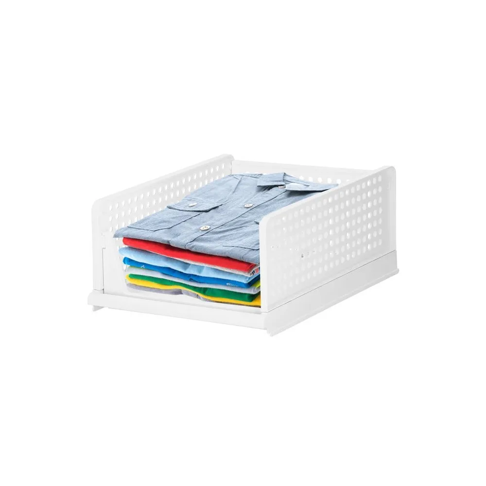 Univerzálny organizér s možnosťou skladania na seba. Modulárny systém na vytvorenie veľkého úložného miesta. Perfektný pre spálne, detské izby alebo kúpeľne. Sklopné bočné steny, možnosť integrácie do šatníkových skríň a regálových systému. Rozmery 33x43x18,5 cm (šxhxv).