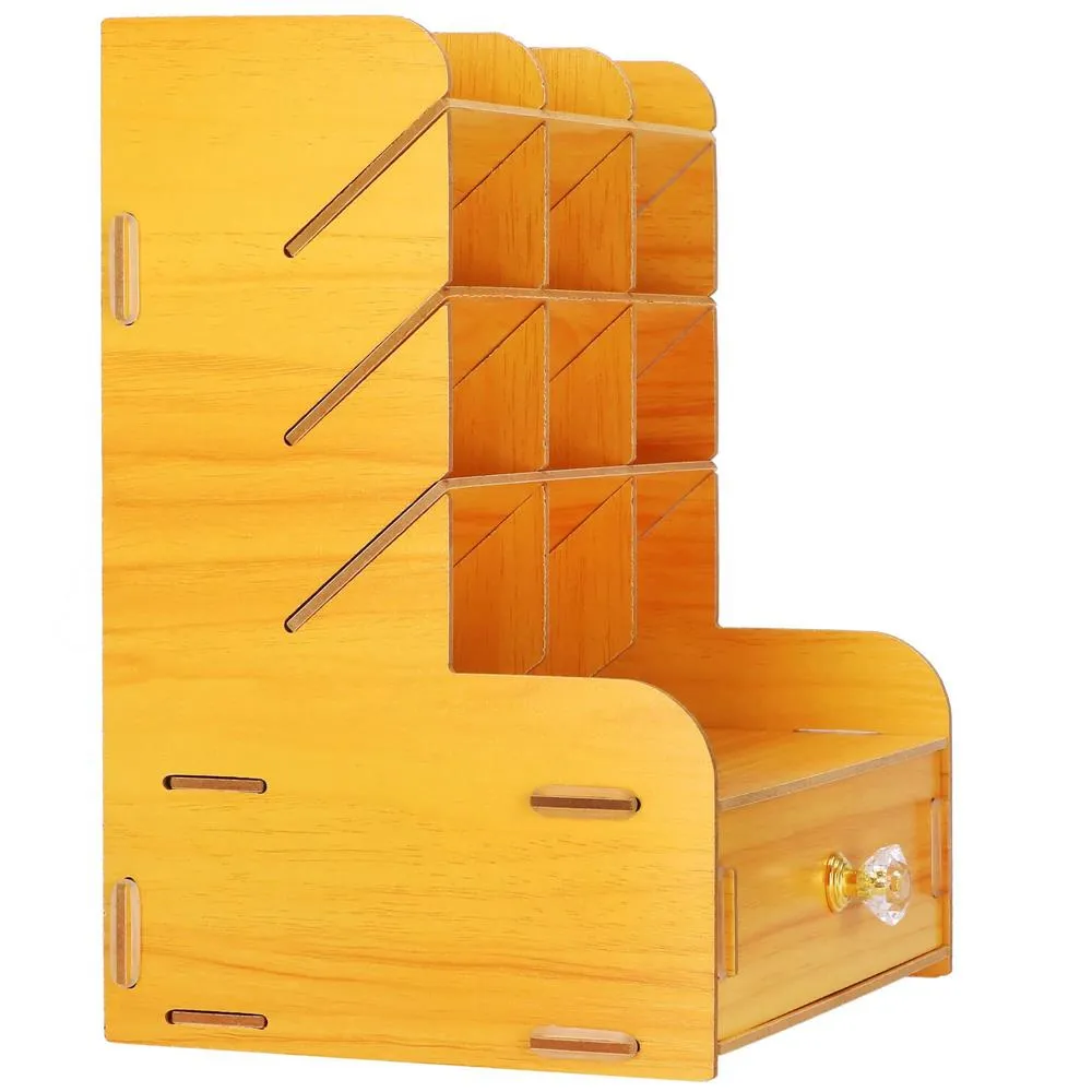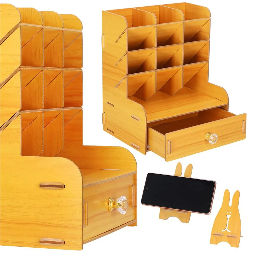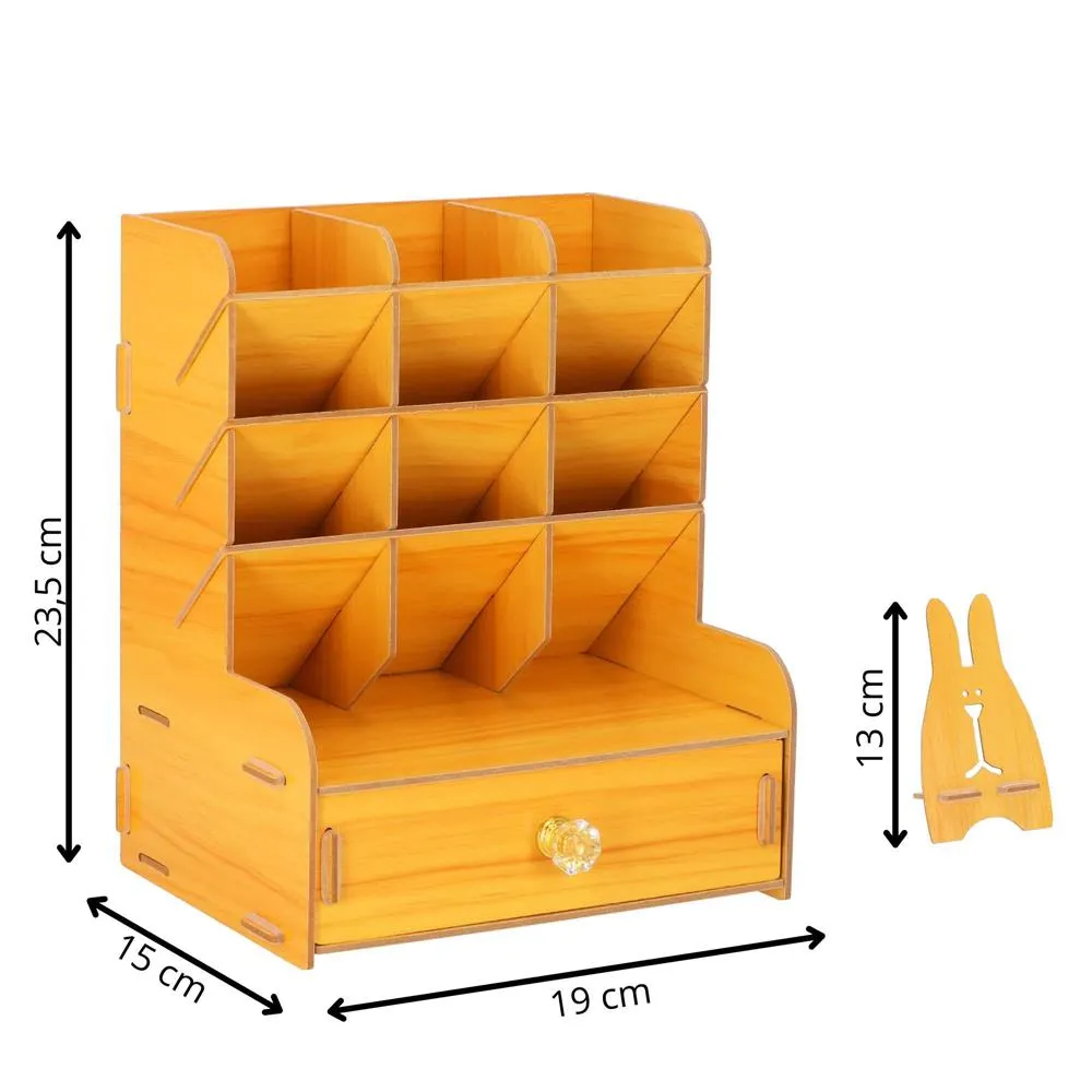 Drevený organizér na stôl s veľkým úložným priestorom . Vyrobené z pevného prírodného materiálu, je zárukou odolnosti a zaisťuje mnoho rokov používania. Má 9 priehradok, policu a výsuvnú zásuvku. Elegantný napriek tomu premyslený dizajn, stabilná konštrukcia. Pomôže vám s organizáciou miesta a tým zlepší efektivitu práce.
