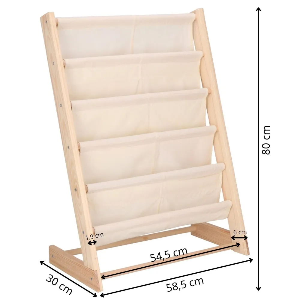 Praktický organizér pre detské knihy a hračky s piatimi priestrannými priehradkami udrží všetko prehľadne usporiadané a vždy po ruke. Podporuje samostatnosť dieťaťa a prebúdza jeho každodenný záujem o čítanie. Ideálne na ukladanie rozprávok, zošitov či obľúbených hračiek. Prírodné prevedenie skvele zapadne do každej detskej izby.