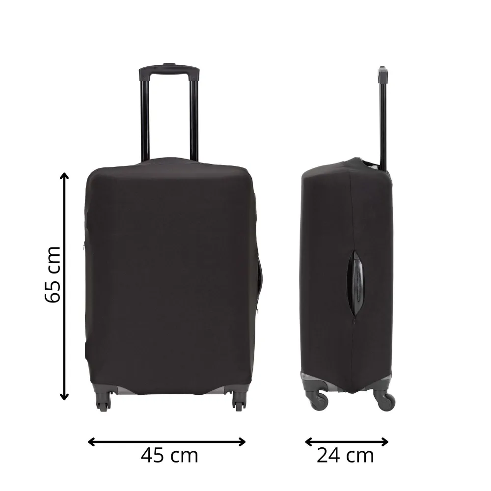 Elastický obal na kufor chráni batožinu pred nečistotami, poškriabaním aj ľahkým postriekaním počas cestovania. Vďaka pružnému materiálu sa ľahko prispôsobí tvaru kufra a pevne drží na mieste. Obojstranný zips a elastický popruh s prackou zaisťujú stabilné uchytenie. Praktické riešenie pre opakované použitie, ktoré je možné navyše prať v práčke. Rozmery: 65x45x24 cm.