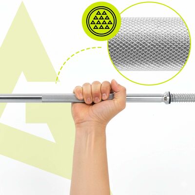 Tyč je navrhnutá pre maximálnu nosnosť až 160 kg , pričom jej vlastná hmotnosť je 8,2 kg. Súčasťou sú vylepšené objímky na uchytenie závažia , ktoré držia kotúče pevne na mieste a zabraňujú ich posunu počas cvičenia. Vďaka kvalitnej konštrukcii a odolným materiálom je vhodná na pravidelné používanie. Ponúka ideálnu kombináciu pevnosti, bezpečnosti a komfortu , vďaka ktorej môžete trénovať naplno a bez kompromisov.