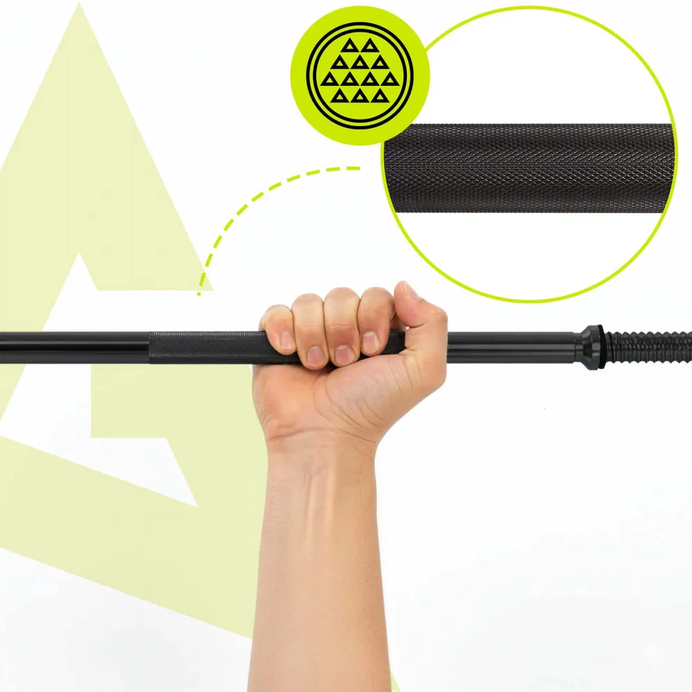 Tyč je navrhnutá pre maximálnu nosnosť až 140 kg , pričom jej vlastná hmotnosť je 6,5 kg. Súčasťou sú vylepšené objímky na uchytenie závažia , ktoré držia kotúče pevne na mieste a zabraňujú ich posunu počas cvičenia. Vďaka kvalitnej konštrukcii a odolným materiálom je vhodná na pravidelné používanie. Ponúka ideálnu kombináciu pevnosti, bezpečnosti a komfortu , vďaka ktorej môžete trénovať naplno a bez kompromisov.