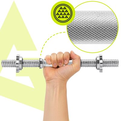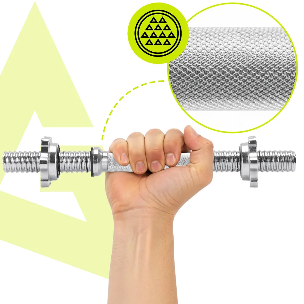 Vzpieračská tyč 36 cm rovná os 28 mm ACTIGET ACT0002 je ideálnou voľbou pre domáce aj klubové cvičenia s jednoručnými činkami. Je určená pre kotúče s otvorom 28 mm a umožňuje jednoducho prispôsobiť záťaž podľa úrovne tréningu. Protišmyková drážkovaná rukoväť zaisťuje pevný a istý úchop aj pri intenzívnom cvičení. Tyč je vyrobená z kvalitnej chrómovanej ocele , ktorá je odolná proti opotrebovaniu a korózii. Vďaka vylepšeným závitovým objímkam zostávajú kotúče bezpečne fixované po celú dobu tréningu.