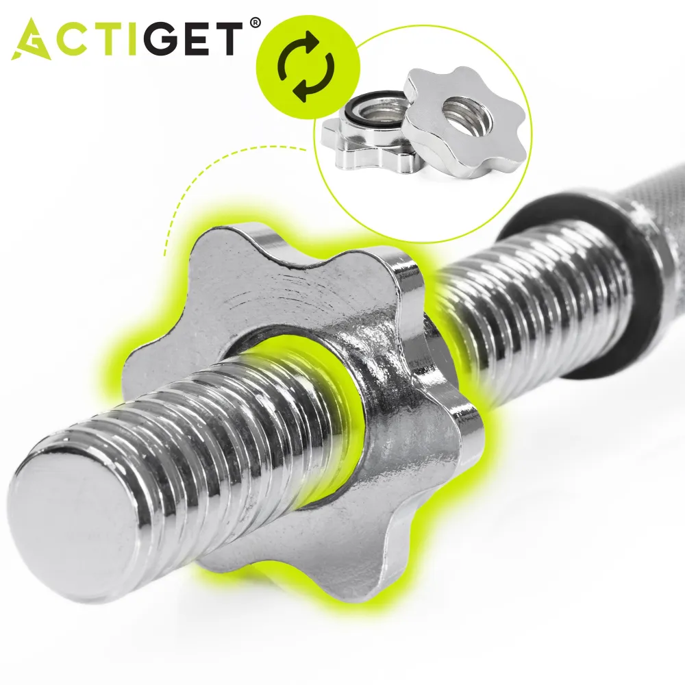 Vzpieračská tyč 40 cm rovná os 30 mm ACTIGET ACT0012 je ideálnou voľbou pre domáce aj klubové cvičenia s jednoručnými činkami. Je určená pre kotúče s otvorom 30 mm a umožňuje jednoducho prispôsobiť záťaž podľa úrovne tréningu. Protišmyková drážkovaná rukoväť zaisťuje pevný a istý úchop aj pri intenzívnom cvičení. Tyč je vyrobená z kvalitnej chrómovanej ocele , ktorá je odolná proti opotrebovaniu a korózii. Vďaka vylepšeným závitovým objímkam zostávajú kotúče bezpečne fixované po celú dobu tréningu.