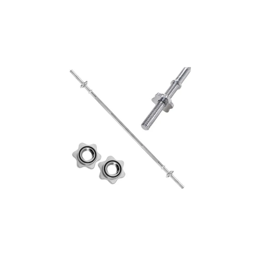 Vzpieračská tyč je vyrobená z vysoko kvalitnej ocele, ktorá je opatrená chrómovou vrstvou odolnou proti potu a vlhkosti. Protišmykové vrúbkovanie úchopových častí zaručuje perfektnú stabilitu tyče v ruke a to aj pri intenzívnejších cvičeniach. Konce tyče sú opatrené závitovou nakladacou časťou s maticami . Vďaka nim môžete ľahko upraviť hmotnosť záťaže podľa aktuálnych dispozícií a typu cvičenia. Matice sú navyše vybavené gumovým tesnením, ktoré pevne fixuje záťaž a zamedzuje samovoľnému uvoľneniu matíc.