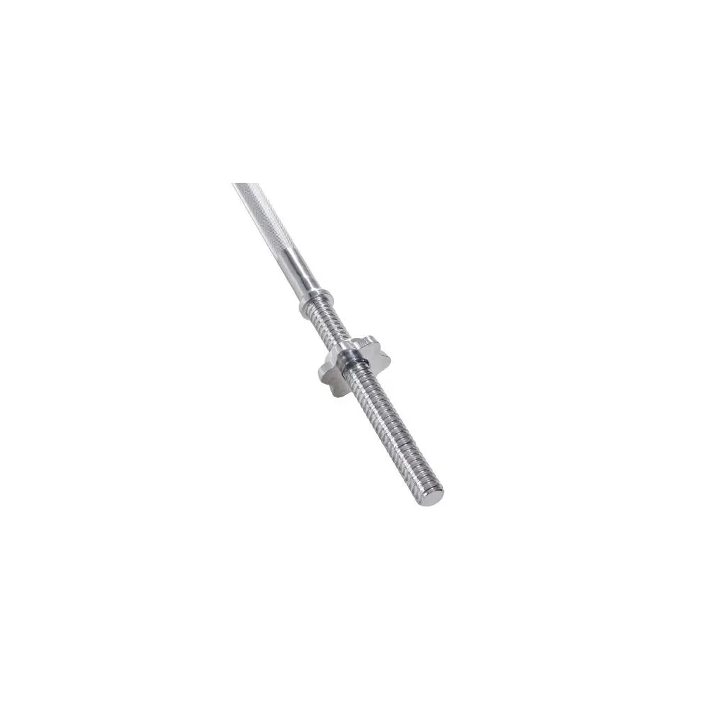 Vzpieračská tyč je vyrobená z vysoko kvalitnej ocele, ktorá je opatrená chrómovou vrstvou odolnou proti potu a vlhkosti. Protišmykové vrúbkovanie úchopových častí zaručuje perfektnú stabilitu tyče v ruke a to aj pri intenzívnejších cvičeniach. Konce tyče sú opatrené závitovou nakladacou časťou s maticami . Vďaka nim môžete ľahko upraviť hmotnosť záťaže podľa aktuálnych dispozícií a typu cvičenia. Matice sú navyše vybavené gumovým tesnením, ktoré pevne fixuje záťaž a zamedzuje samovoľnému uvoľneniu matíc.