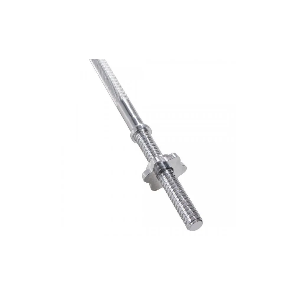 Vzpieračská tyč je vyrobená z vysoko kvalitnej ocele, ktorá je opatrená chrómovou vrstvou odolnou proti potu a vlhkosti. Protišmykové vrúbkovanie úchopových častí zaručuje perfektnú stabilitu tyče v ruke a to aj pri intenzívnejších cvičeniach. Konce tyče sú opatrené závitovou nakladacou časťou s maticami. Vďaka nim môžete ľahko upraviť hmotnosť záťaže podľa aktuálnych dispozícií a typu cvičenia. Matice sú navyše vybavené gumovým tesnením, ktoré pevne fixuje záťaž a zamedzuje samovoľnému uvoľneniu matíc.
