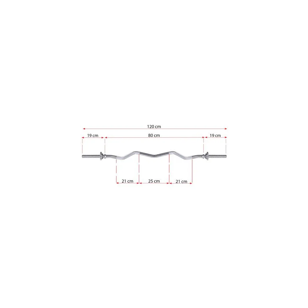 Obojručná posilňovacia tyč vhodná pre efektívny tréning doma aj v telocvični. Dĺžka 120cm, os 25mm, max. zaťaženie 150kg, lomené EZ prevedenie so závitom a maticami.