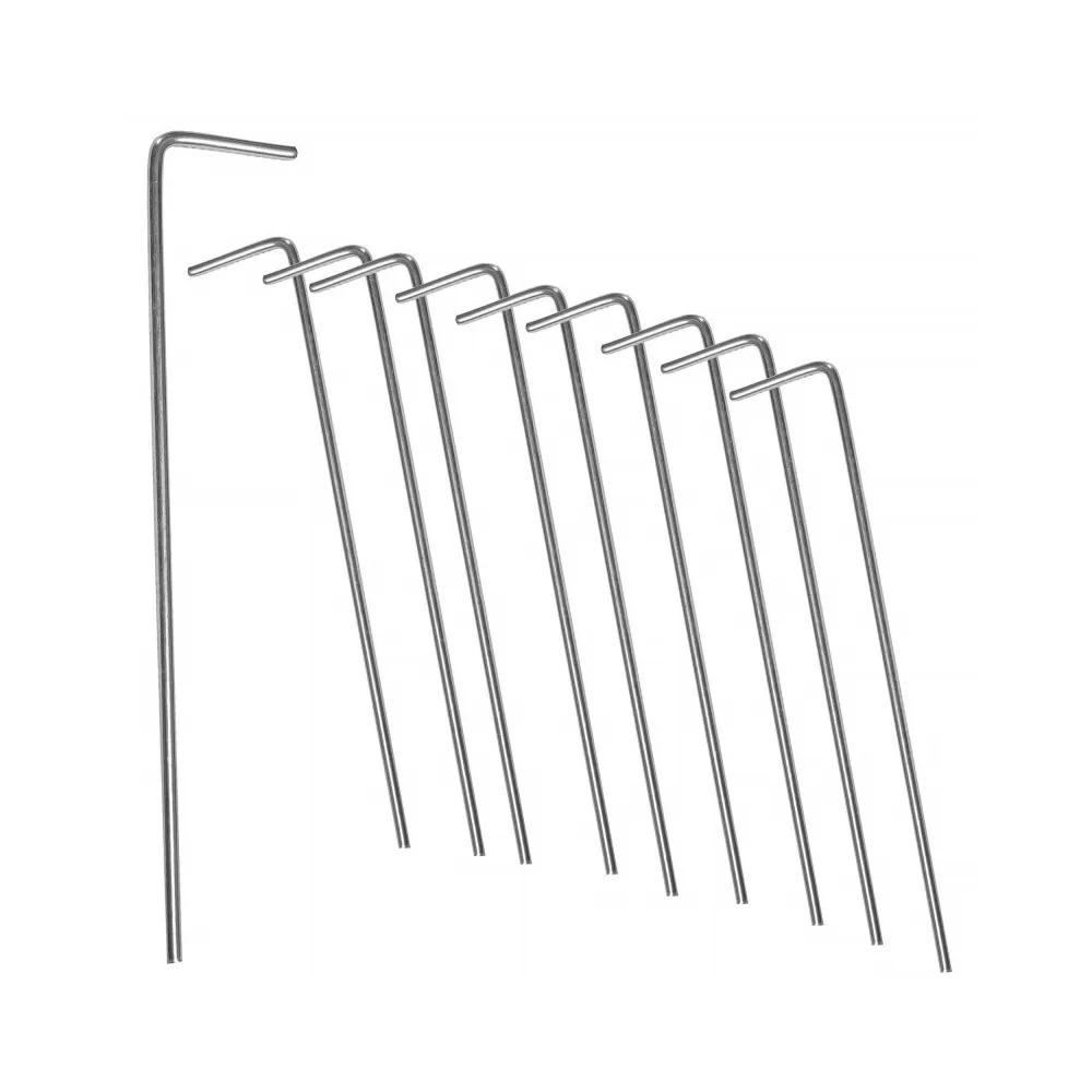 Sada 10 kovových kotiev pre spoľahlivé ukotvenie stanu, prístrešku či plachty . Každý kolík má dĺžku 20 cm, háčik dlhý 3 cm a priemer 4 mm, čo zaisťuje pevnosť a odolnosť aj v náročnejších podmienkach. Odolný materiál sa neohýba a je vhodný na opakované použitie.