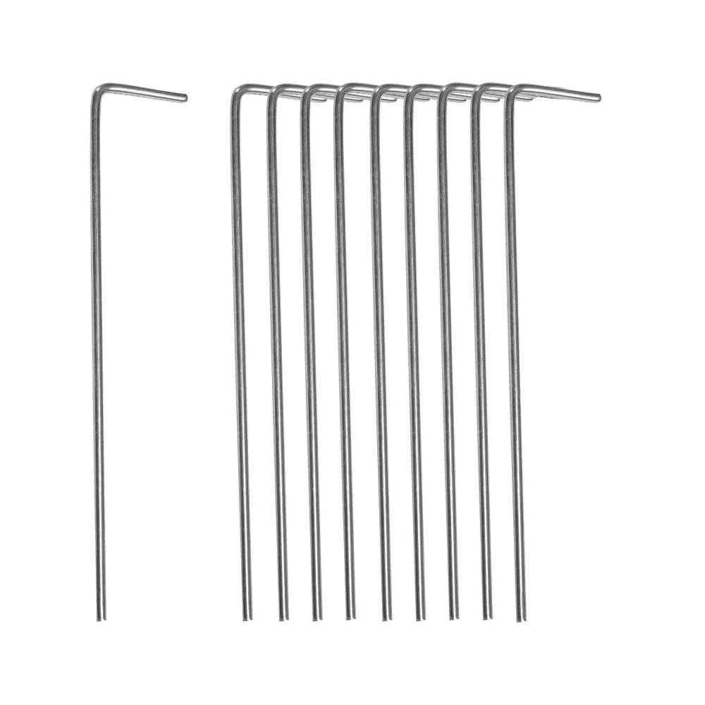 Sada 10 kovových kotiev pre spoľahlivé ukotvenie stanu, prístrešku či plachty . Každý kolík má dĺžku 17,5 cm, háčik dlhý 2,5 cm a priemer 4 mm, čo zaisťuje pevnosť a odolnosť aj v náročnejších podmienkach. Odolný materiál sa neohýba a je vhodný na opakované použitie.