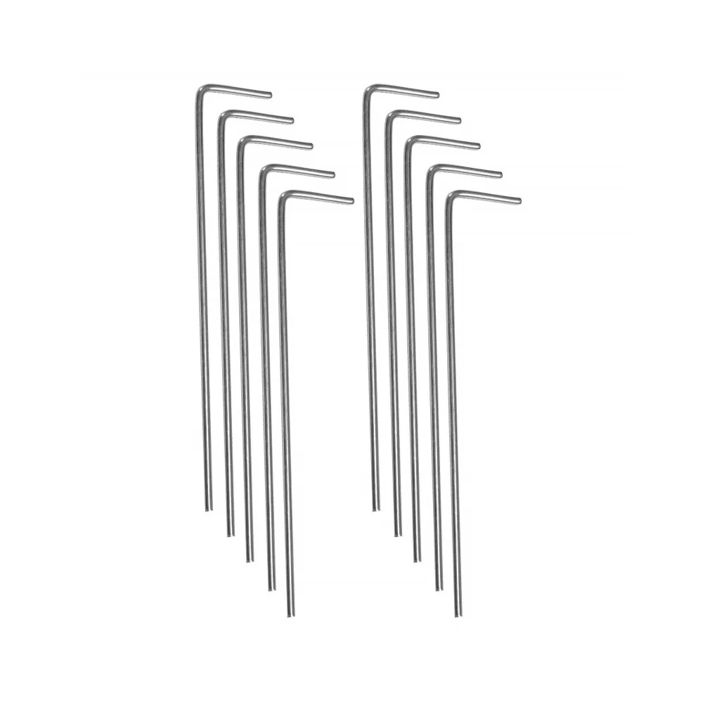 Sada 10 kovových kotiev pre spoľahlivé ukotvenie stanu, prístrešku či plachty . Každý kolík má dĺžku 17,5 cm, háčik dlhý 2,5 cm a priemer 4 mm, čo zaisťuje pevnosť a odolnosť aj v náročnejších podmienkach.