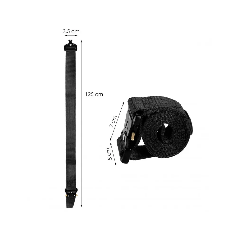 Taktický pás je vyrobený z nylonového popruhu . Ide o extrémne odolný materiál, ktorý je takmer nemožné rozbiť. K dispozícii v štýlových farbách, plní technickú aj vizuálnu funkciu. Špeciálne navrhnutá pracka umožňuje veľmi široké nastavenie veľkosti. Štýlový doplnok, perfektný na výlety.
