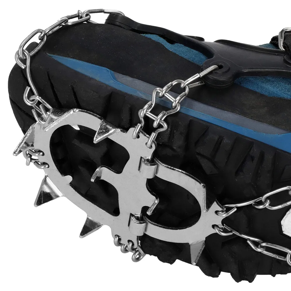 Protišmykové návleky na topánky sú vyrobené z kvalitných a veľmi odolných materiálov. Kombinácia ocele a silikónového TPE plastu umožnuje ich použitie aj v extrémnych podmienkach. Špeciálne rozloženie oceľových hrotov na päte a prednej časti chodidla s kolískovou konštrukciou výrazne obmedzuje riziko pošmyknutia aj na veľmi klzkom povrchu.