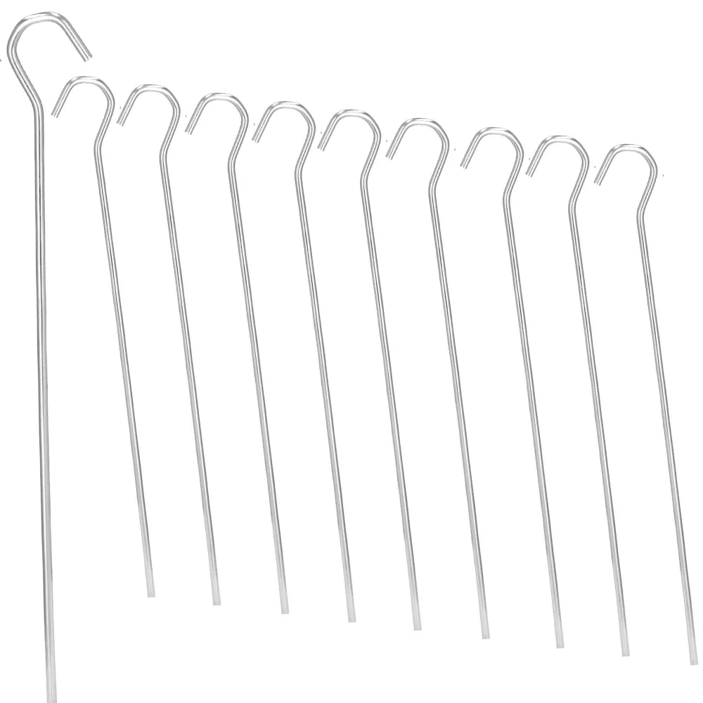 Kotviace kolíky s háčikom, sada 10ks. Kvalitná oceľ, pevný a odolný materiál. Nedeformuje sa, dlhá životnosť. Multifunkčné využitie, špeciálny tvar. Pevne a bezpečne vám pomôžu prichytiť turistický alebo plážový stan, altánok alebo fóliový tunel.