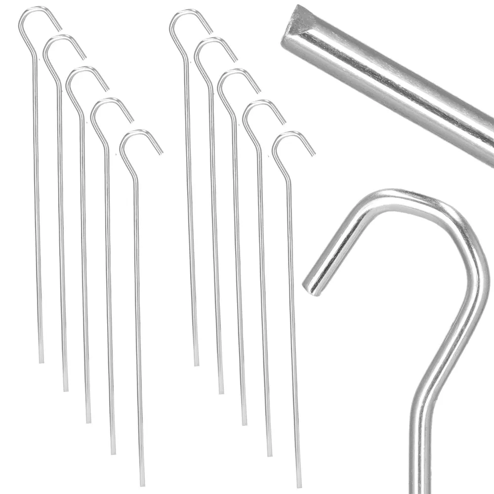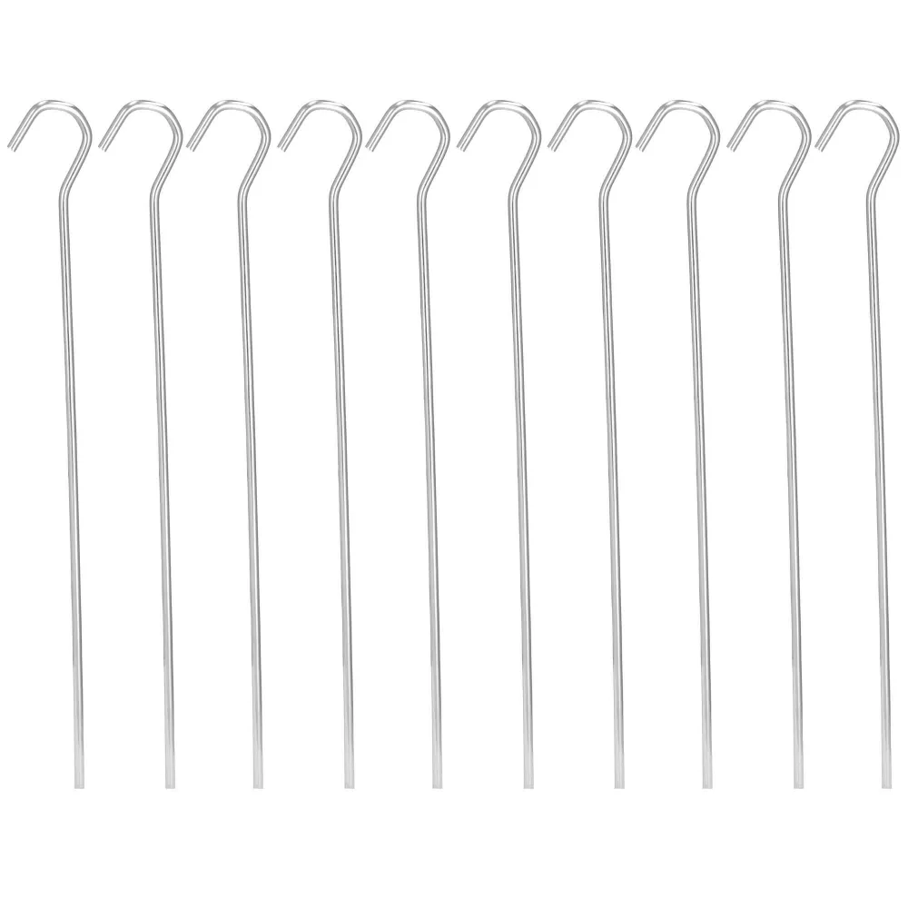 Kotviace kolíky s háčikom, sada 10ks. Kvalitná oceľ, pevný a odolný materiál. Nedeformuje sa, dlhá životnosť. Multifunkčné využitie, špeciálny tvar. Pevne a bezpečne vám pomôžu prichytiť turistický alebo plážový stan, altánok alebo fóliový tunel.