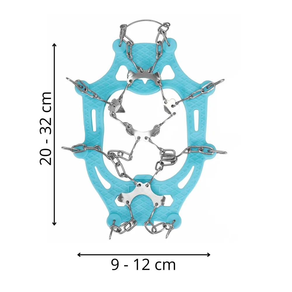 Protišmykové návleky na topánky zvyšujú bezpečnosť chôdze na zľadovatených a extrémne klzkých povrchoch. Vďaka 16 oceľovým hrotom fungujú podobne ako mačky a zaisťujú lepšiu stabilitu v náročnom teréne. V bežnej zimnej prevádzke sa osvedčia aj ako nešmykľavky pri prechádzkach či výletoch. Kombinácia ocele a silikónového TPE zaručuje odolnosť, súčasťou je obal a stabilizačné popruhy pre topánky veľkosti 40-45.