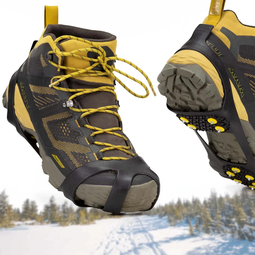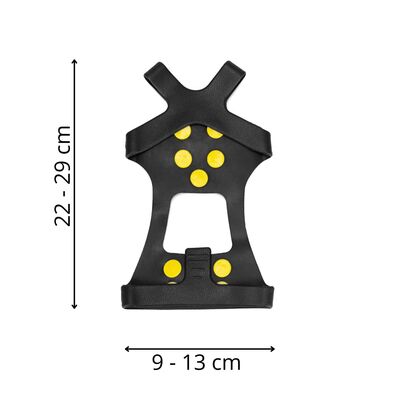 Protišmykové návleky na topánky zaisťujú bezpečný pohyb na klzkých a zľadovatených povrchoch. Vďaka 20 oceľovým hrotom poskytujú pevný záber a slúžia ako spoľahlivé mačky pre náročnejší terén. Pri bežnom zimnom používaní sa osvedčia aj ako nešmykľavky pri prechádzkach či výletoch. Kombinácia nerezovej ocele a silikónového TPE zvyšuje priľnavosť, stabilitu a odolnosť pri zimných aktivitách.