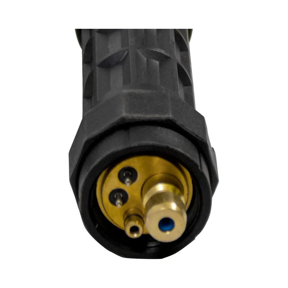 Zvárací kábel s chrómovaným telom horáka. Ergonomická rukoväť horáka na guľovom kĺbe pre čo najväčšiu flexibilitu pri zváraní, dve špirálové pružiny na rukoväti a pripojenie zaisťujú optimálnu ochranu proti zalomeniu.