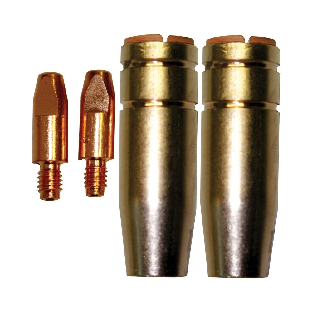 Dve kónické trysky na plyn a dve prúdové trysky 0,8 mm. Závit M6. Vhodné k Zváraciemu káblu 4 ms horákom TBI 250/MB 25 (kód tovaru: 41150) ak Zváraciemu káblu 4 m MB15/TBI150 (kód tovaru: 41148).