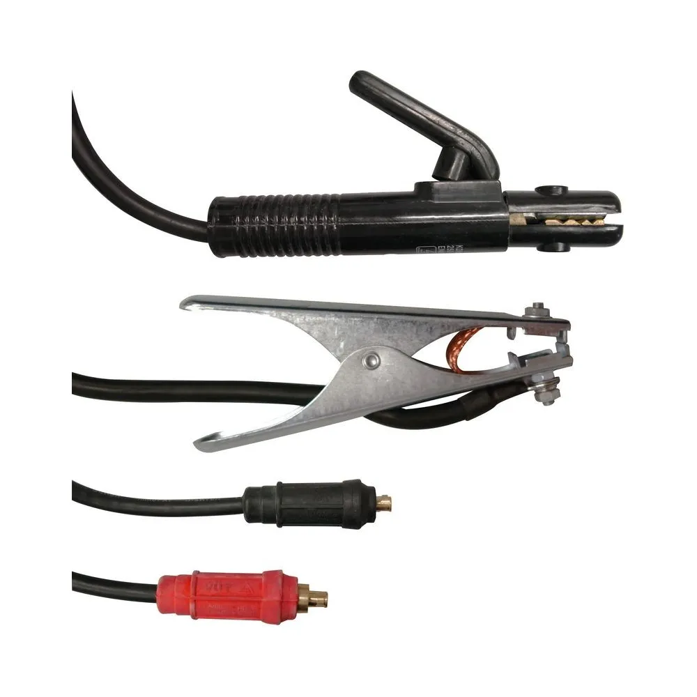 Uzemňovací kábel 1,5 m (16 mm2) s ukostrovacou svorkou, držiak elektród s káblom 1,5 m (16 mm2), nástrčný konektor 9 mm. Vhodný k zváračkám s kódom tovaru 20005, 20007, 20056, 20055, 20057, 20046, 20047.