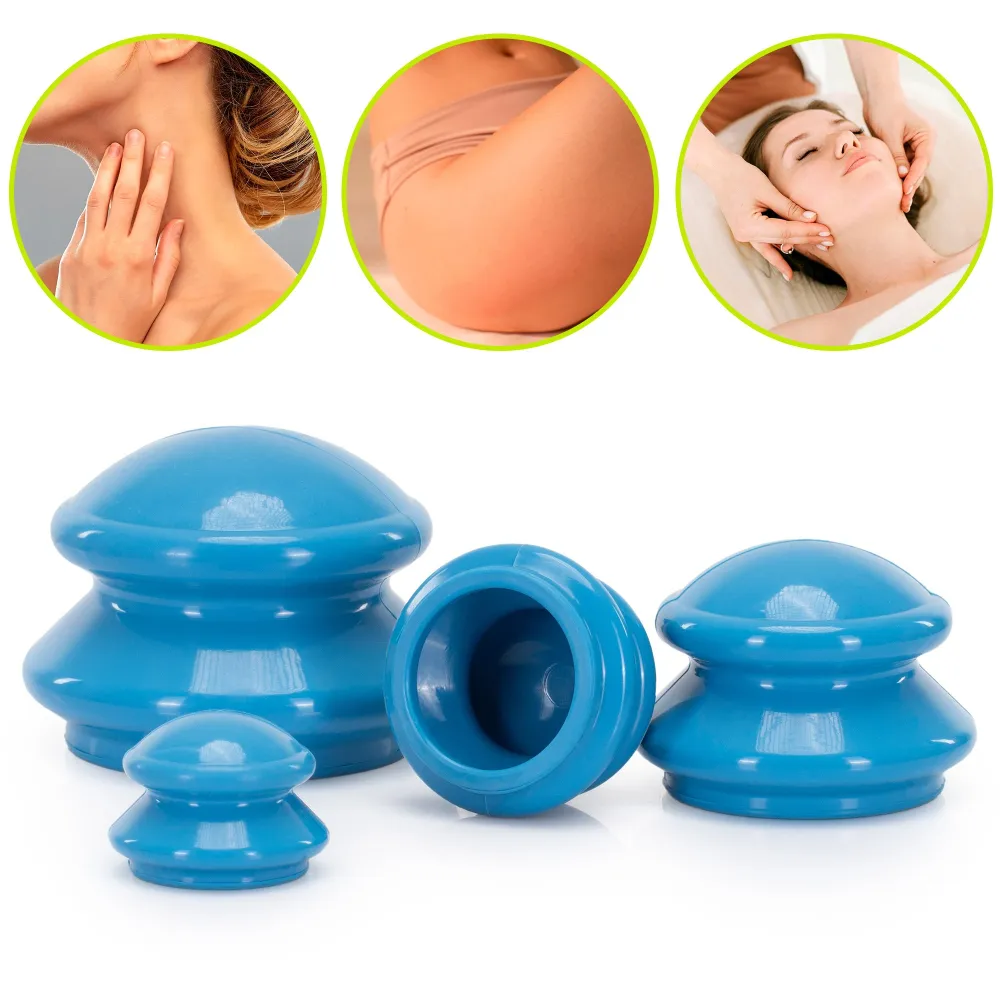 Masážne banky na uvoľnenie svalov, podporu regenerácie aj starostlivosť o celulitídu. Štyri rôzne veľkosti na použitie na rôznych častiach tela. Osvedčená tradičná metóda starostlivosti o telo. Vyrobené zo silikónu a vhodné na opakované použitie. Pomáhajú uvoľniť napäté svaly. Prinášajú úľavu pri bolestiach chrbta, krku aj končatín. Zlepšujú prekrvenie a podporujú rýchlejšiu obnovu tela.