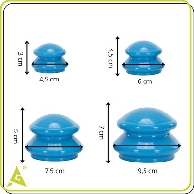 Masážne banky sada 4 ks ACTIGET ACT0026 modrej vychádza z osvedčenej a tradičnej metódy masáže , ktorá sa používa na uvoľnenie svalov i podporu regenerácie. Banky sú určené na masáž celého tela i na celulitídu a vďaka sade v štyroch veľkostiach je možné ich použiť na rôzne partie – chrbát, krk, nohy, paže aj zadok. Sú vyrobené zo silikónu , sú opakovane použiteľné a ľahko sa prispôsobia tvaru tela.