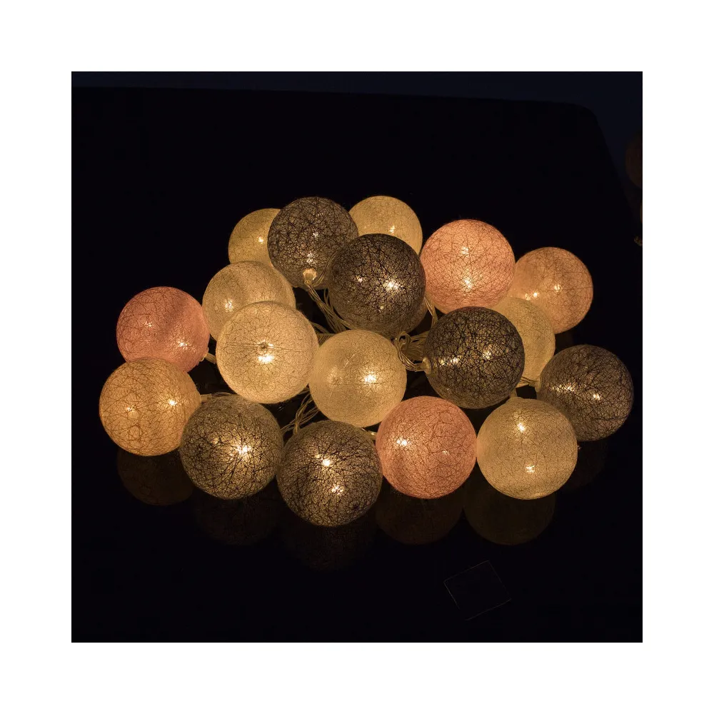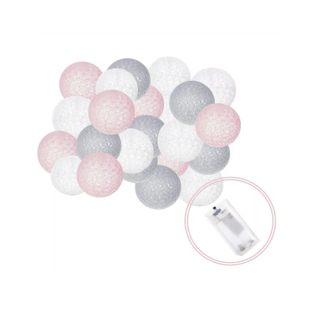 LED svetelná reťaz Bavlnené gule 6cm - 4m, 20LED, 2xAA, teplá biela