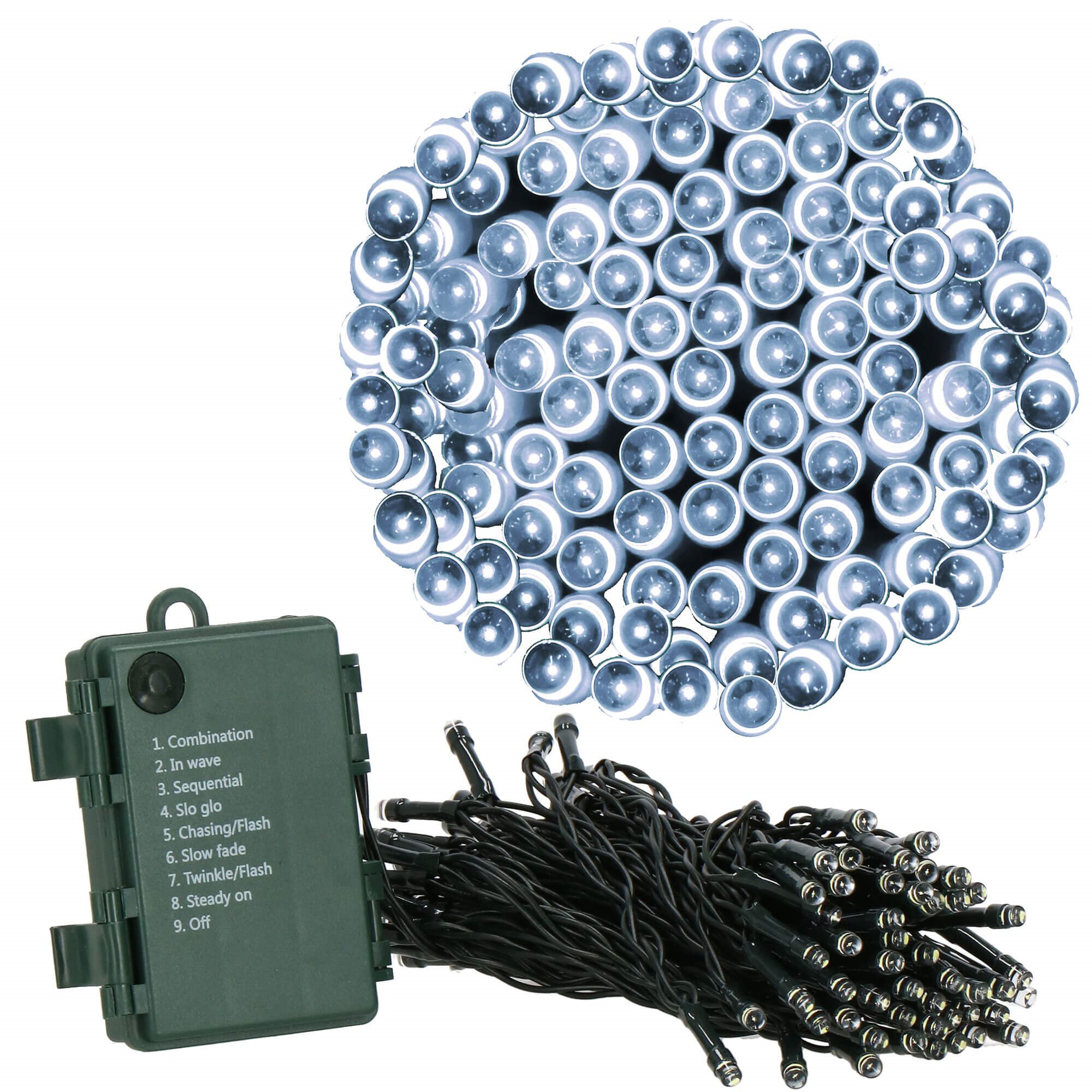 LED svetelná reťaz - 5m, 50LED, 8 funkcií, 3xAA, IP44, studená biela